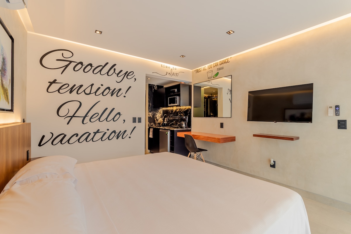 Enjoy a stylish experience at this centrally-located place. Truly an amazing location, a 5 minute ride from the beach but at that heart of Cancun where everything you need is at walking distance. No need to rent a car here! Designed with much care and endless nights thinking of what we all look for after along day out- high speed internet, powerful A/C unit, comfortable beds, great shower pressure,ample space to kick back and a fully equipped kitchen.
