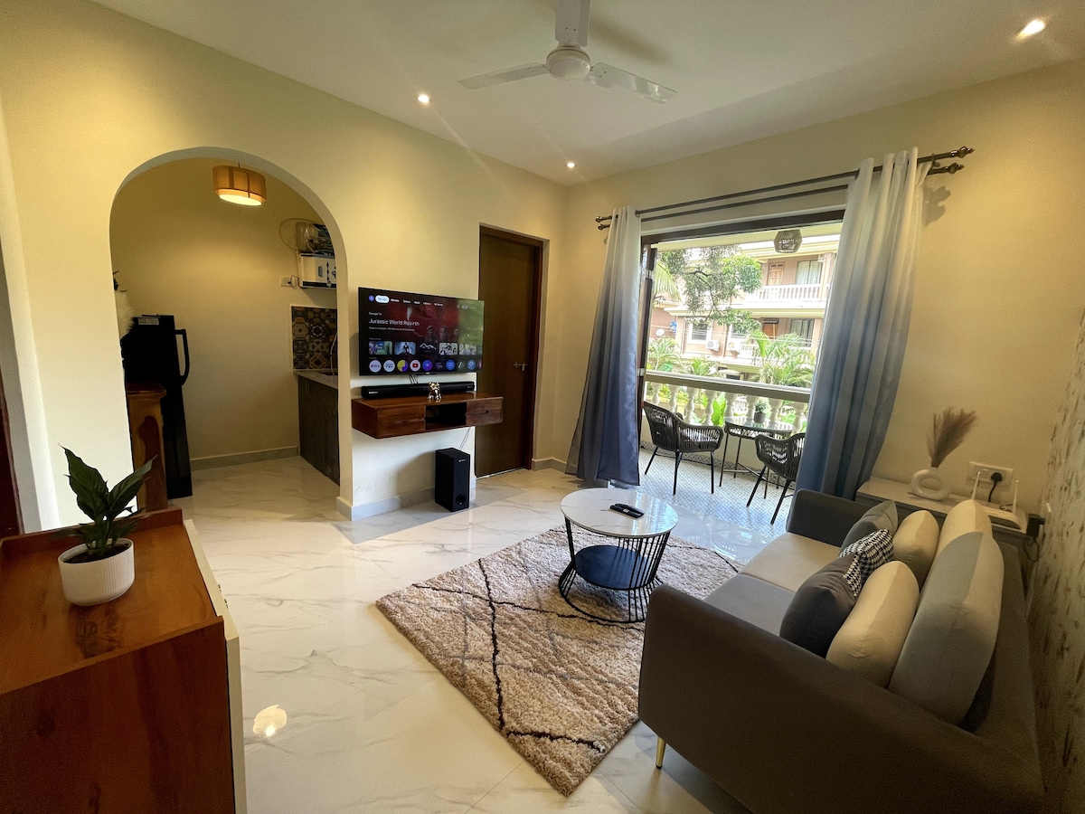 Nestled in the serene paradise of Candolim, our Studio apartment offers the perfect blend of comfort and convenience for a family. This charming coastal retreat is just a stone's throw away from the pristine beach, ensuring that the soothing sound of the waves is never far from your ears. As you step into this cozy studio, you'll be greeted by a tastefully decorated living space that is bathed in natural light, creating a warm and welcoming atmosphere.