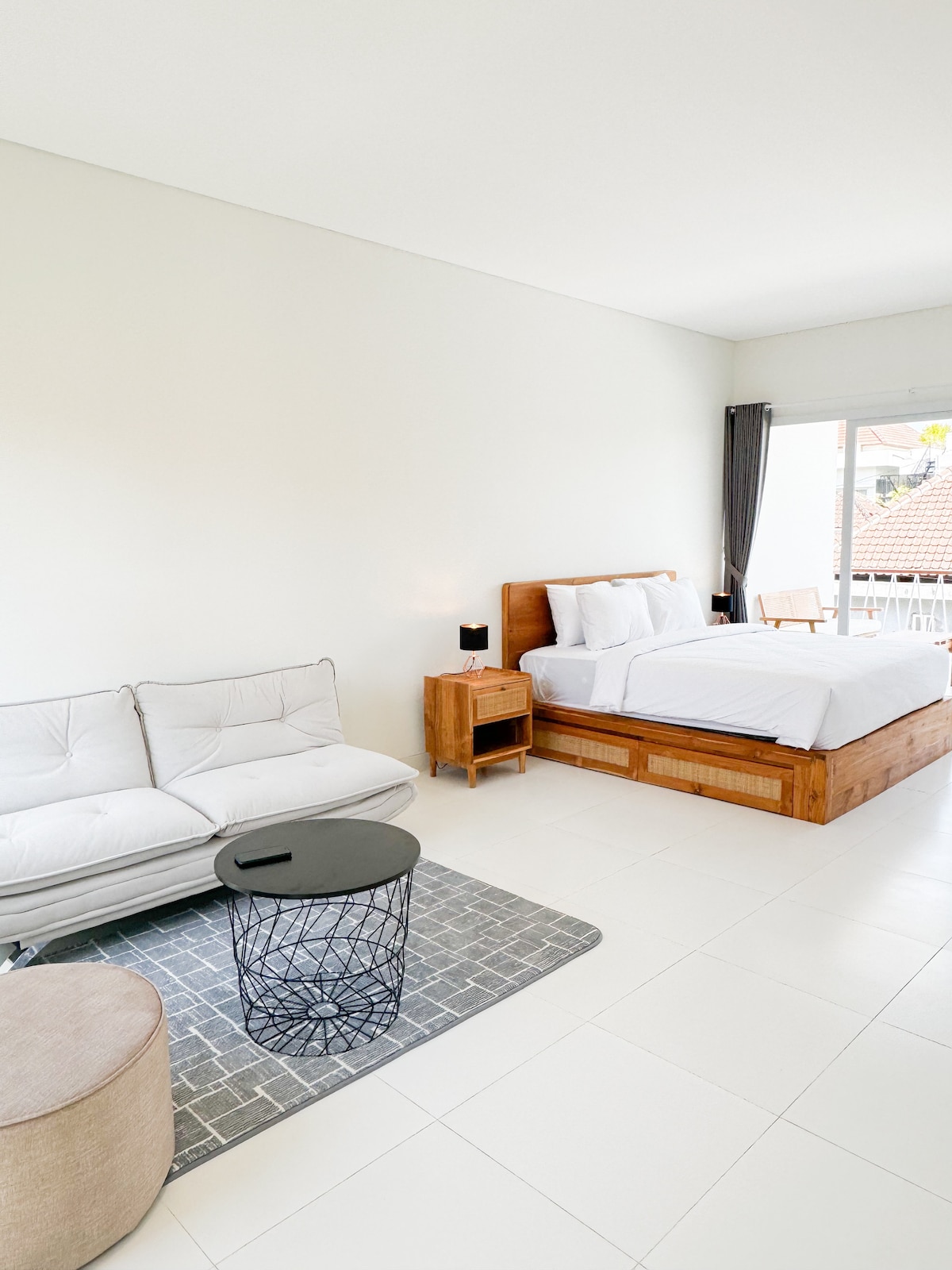 Sunken sofa. Garden breeze. A villa that doesn’t try to impress — it just makes you feel at ease. Tucked in Kerobokan, between Seminyak and Canggu, it’s a calm hideaway from the crowds — but close enough for a quick scooter ride when you want to explore. Beaches, cafés, and nightlife are just 10–15 minutes away by scooter, the easiest way to explore here. And once you’re back, it’s all quiet again. Just garden silence.