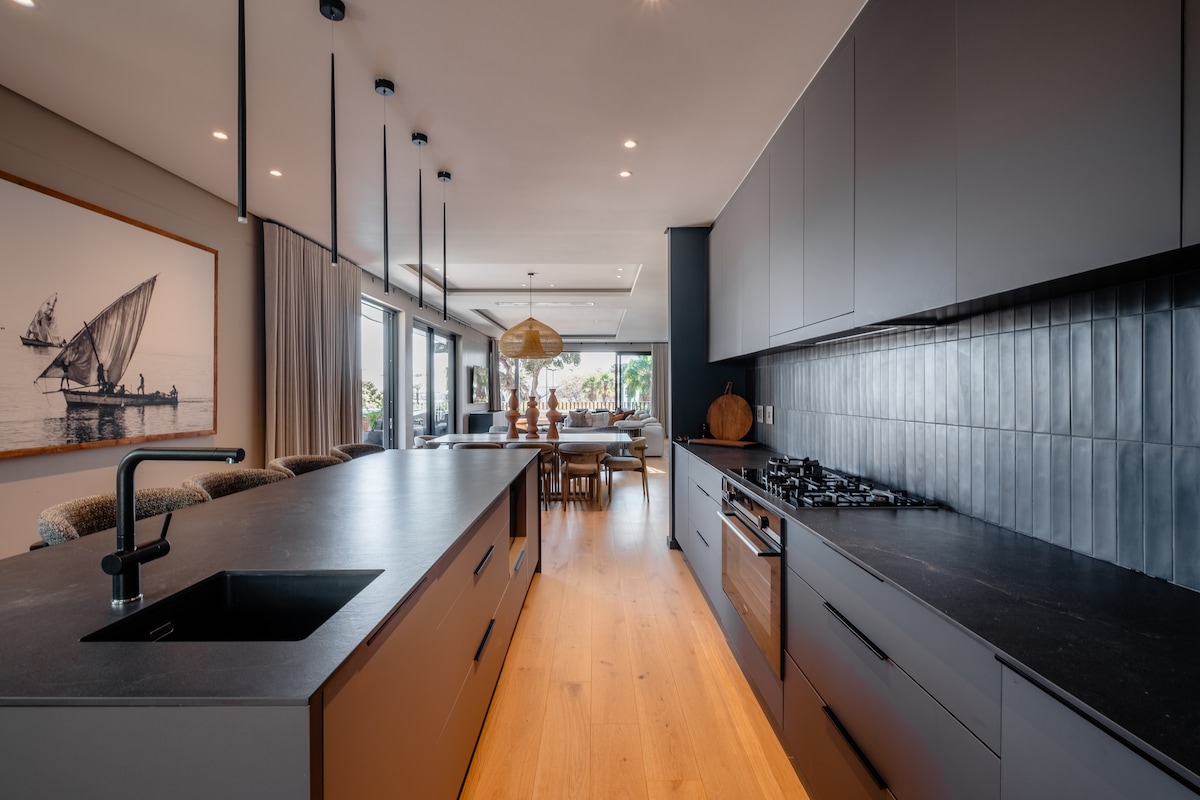 Contemporary meets luxury at the Villa Ravensteyn. A beautiful modern holiday home in Camps Bay with a sublime location. This double-story villa is within walking distance to the infamous Camps Bay promenade. Spoilt for choice with multiple vibrant attractions, shopping and seaside restaurants catering for all tastes. Enjoy your days with sea views and exquisite sunsets. An affinity pool, balcony with sun loungers and a built in gas braai perfect for poolside relaxation & sunbathing.