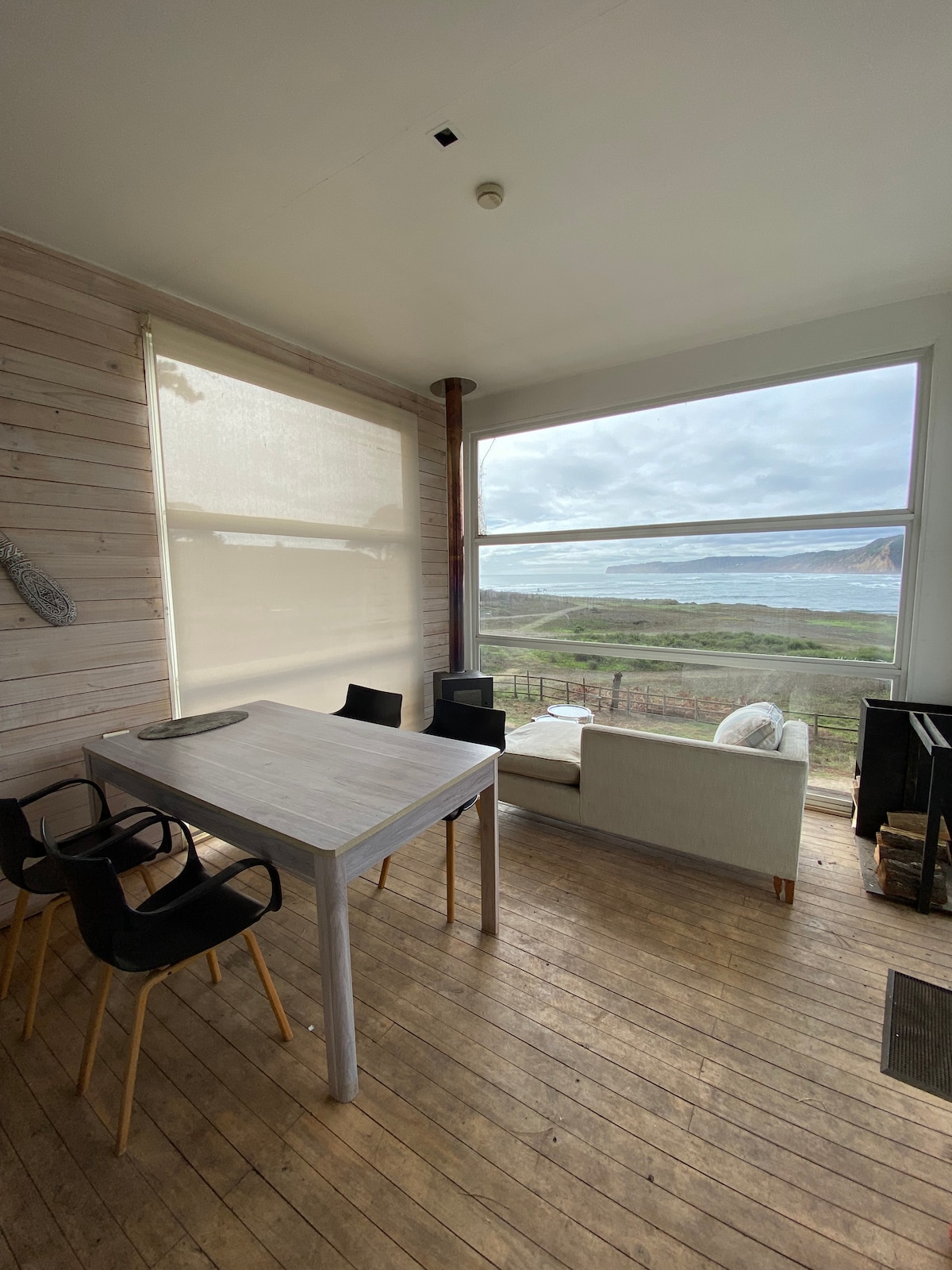 Quédate en una casa con una increíble vista al mar, una propuesta y arquitectura diferentes, todas las comodidades necesarias y una privacidad inigualable. Estarás a minutos de la playa, del río y la desembocadura. Tendrás a tu disposición parrilla, juegos de mesa, cafetera y calefacción electrica. Somos Pet friendly con algunas excepciones. Además, tenemos servicios extra de pago como jacuzzi, telescopio, bienvenida, bicicletas, kayak y SUP. Amplio estacionamiento y camino apto todo vehiculo