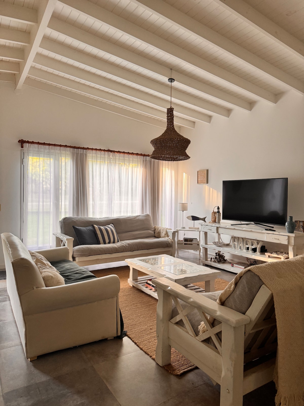 Casa Octubre es una hermosa casa ideal para dos familias, de estilo americano clásico, elegante y casual en un terreno de 1000m2 y 180m2 cubiertos. Ubicada a pocas cuadras de la playa y del centro y mucha comodidad interior para 7 personas y posibilidad de recibir invitados . Tiene un gran parque con piscina , arboles y sol, . Wifi de alta velocidad, 2 Smart tv, y cocina de 5 hornallas y gran horno , lavavajillas , aspiradora robot, plancha vertical y los infaltables en la cocina .