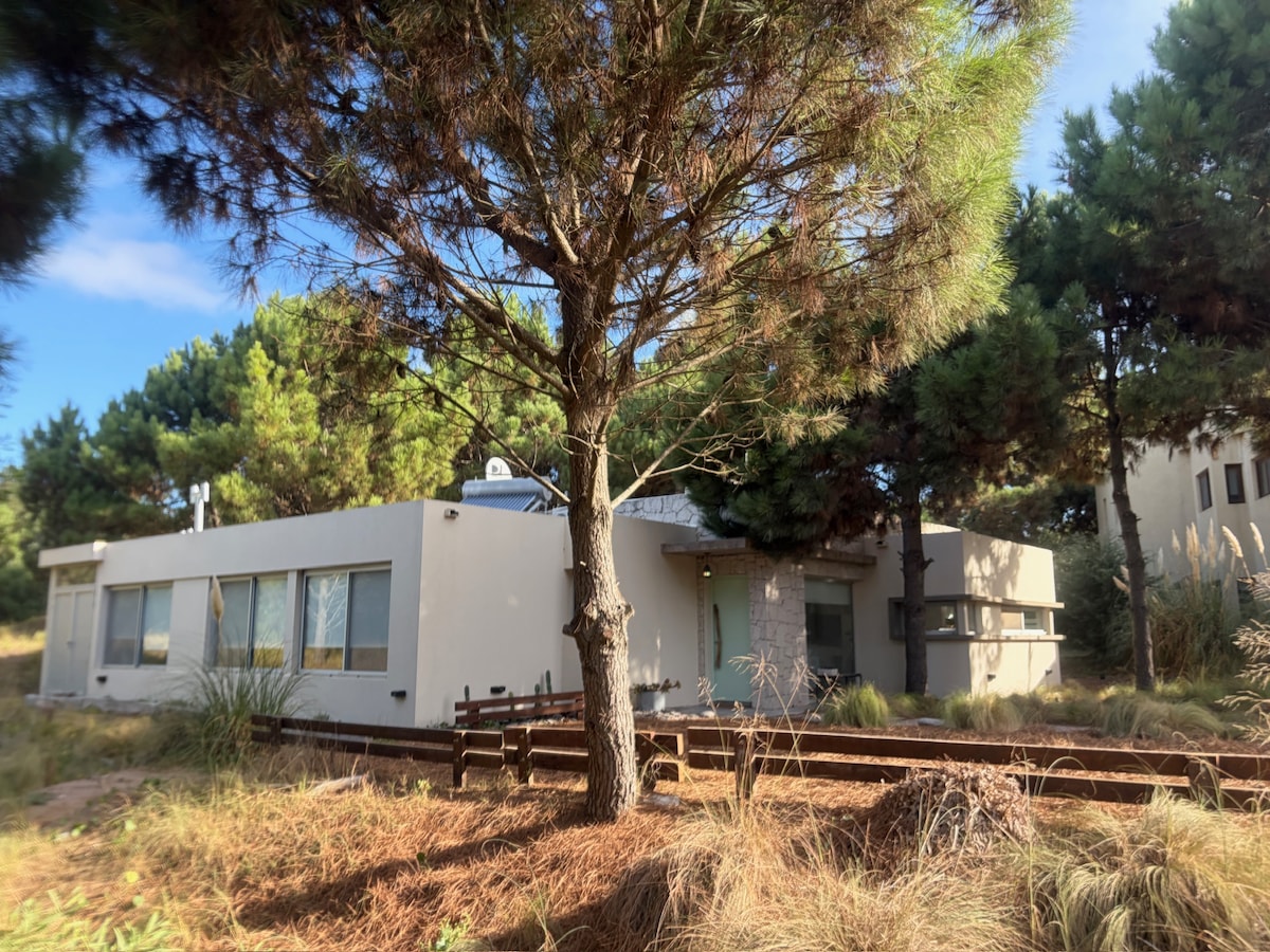 Ubicada en el corazón del bosque, esta moderna y elegante casa de una planta ofrece un refugio único, rodeado de árboles y la tranquilidad de la naturaleza. Con amplios espacios diseñados para disfrutar del entorno, podrás relajarte mientras contemplas increíbles atardeceres y escuchas el sonido de la fauna local. Pensada para disfrutar al máximo del aire libre, con una extensa galería semicubierta, piscina, parrilla y fogonero, donde podrás compartir momentos inolvidables con familia o amigos.