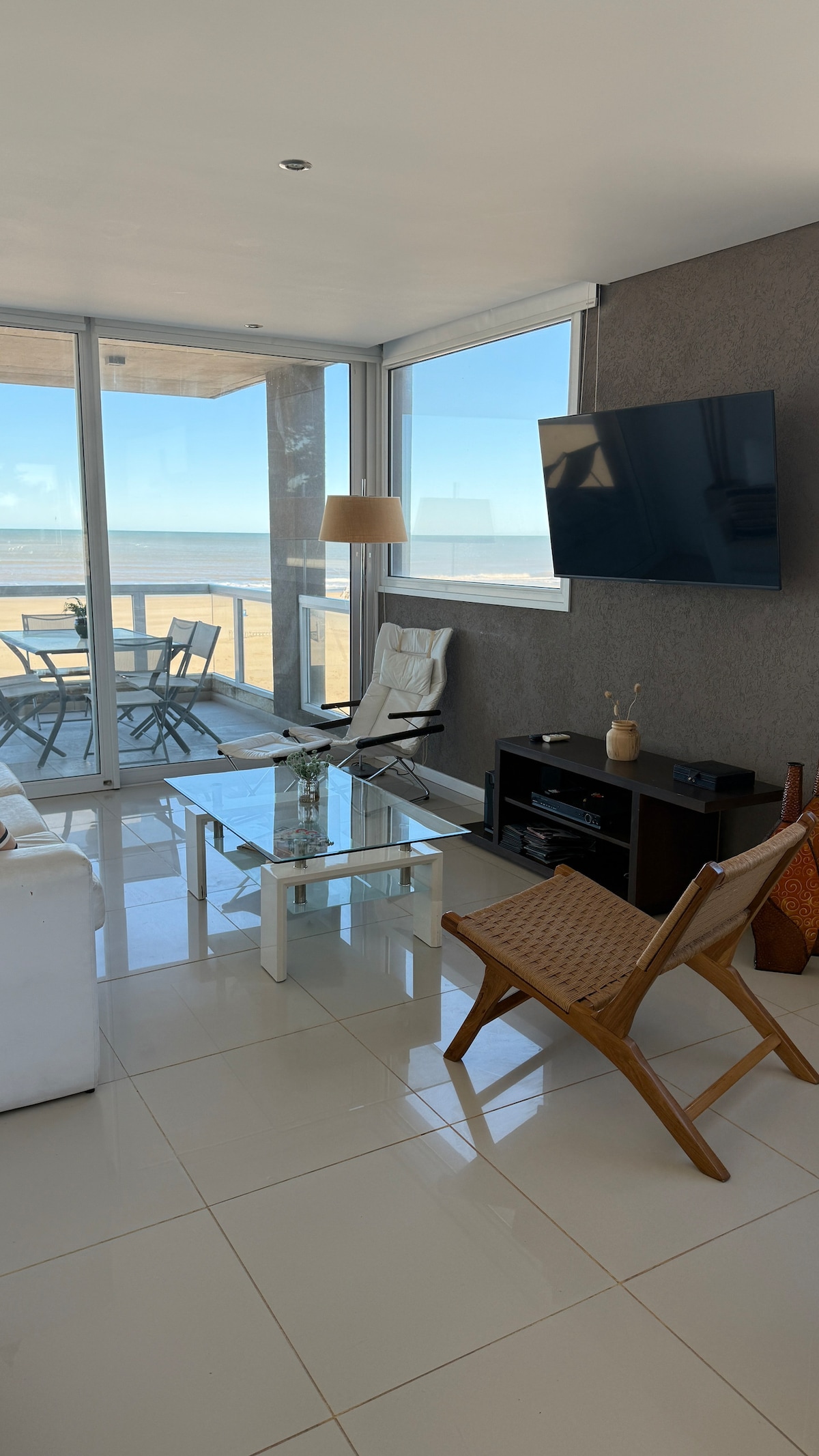 Located on the 1st floor, just 50 meters from the sea, this high-tech apartment is a modern, comfortable, and bright retreat. Unlock the door with a digital lock and enter a space equipped with all the technological amenities you can imagine: 2 Smart TVs with DirecTV, Netflix, Prime, Disney+, Star+, Apple TV, Max, and Xbox already set up. Controllable lights, 2 air conditioners, a grill, and a modern kitchen. Touch mirror and towel warmer in the bathroom. Access to 3 pools and 2 saunas.