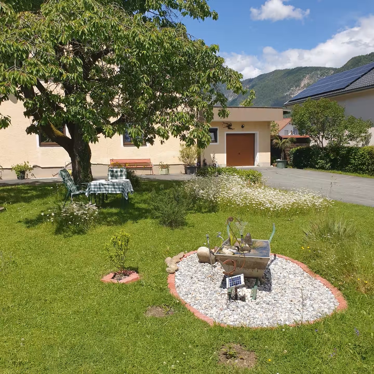 1 Schlafzimmern, Bad, WC, 1 Aufenthaltsraum mit kleiner Küche, Terrasse und Gartensitzplätzen. Anwesen in ruhigem, parkähnlichem Ambiente mit Baumbestand. Eigener Parkplatz. Gute Bus- u. Bahnverbindungen! Faakersee nur 6 Auto minuten entfernt, Wörthersee ca. 10 Auto minuten. Wander und Fahrradwege um den Faakersee/Wörthersee, entlang der Drau. Ausflugsmöglichkeiten, Sehenswürdigkeiten (Minimundus, etc.) in der Nähe, Aussichtsturm Pyramidenkogel. 12 Autominuten und in Italien Pizza essen.