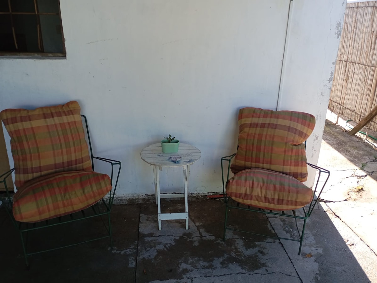 Alojamiento cómodo, práctico y acogedor ubicado a pasos del Puente de Carmelo y a 1km de la Playa Seré. Posee un amplio jardín rodeado de vegetación que lo hacen único. Cuenta con parrillero , horno de barro y fogón. Es un espacio integrado ( loft) con un entrepiso con cama matrimonial y cama de una plaza y baño privado. Posee living comedor amplio con una cama marinera. La cocina muy bien equipada. Ropa de cama y toallas incluídas. Entrada privada y estacionamiento dentro de la vivienda.