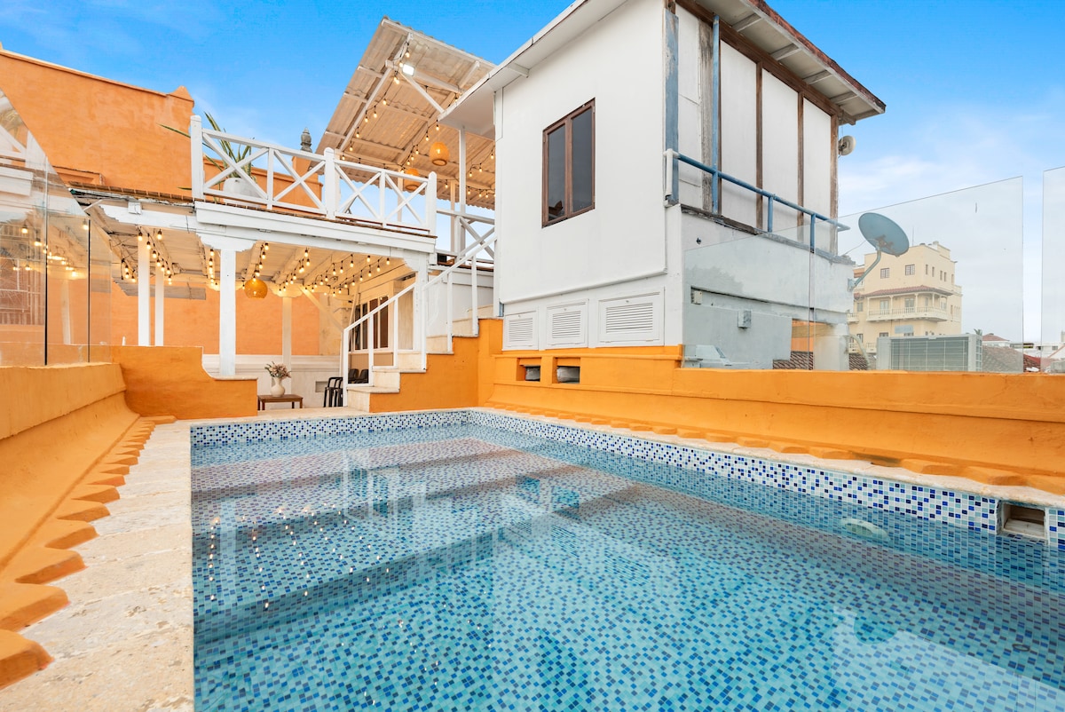 Magnificent house from the 18th century recently restored by one of the most renowned designers in Colombia. The 4 story villa with 4200 sqft includes 5 bedrooms, 2 living rooms, a 360° viewpoint, and one of the best rooftop swimming pools in the historic center. Enjoys a prime location situated 2 blocks away from Pegasus Marina, the Media Luna Plaza, the Convention Center, and the New Four Seasons Hotel at Getsemani. Includes: Daily American breakfast, Maid, Chef and a Doorman (6 pm - 6 am).