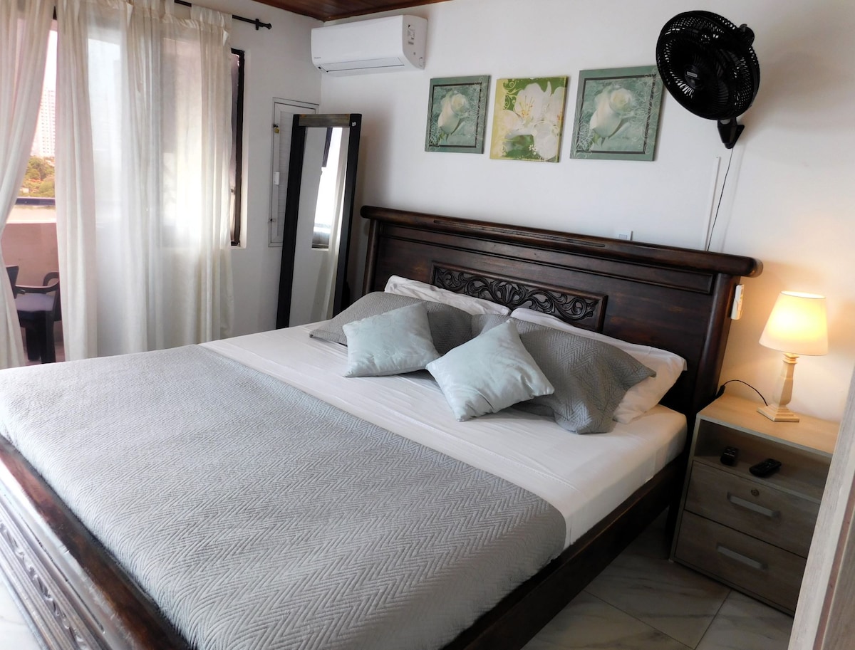 •Gr8 Seaview and Walled City view •Fully equipped •24/7 security •Room+living room+balcony •2 bathrooms with independent showers(hot water) •A/C •WiFi •TV 4K -Early/late flight? We store -reasonable- luggage for free (ask in advance) •Washing Machine •Free Parking •Pool and Jacuzzi •20 min to Walled City •Mattress/Sheets/towels constantly sanitized •If you know little about C/gena, let me guide you!
