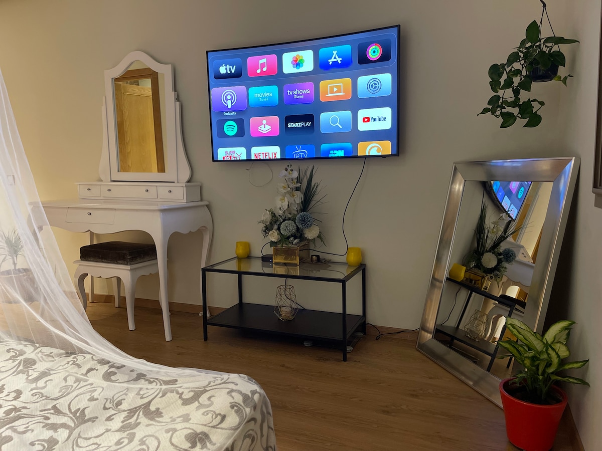 Beautiful private room with European style + Washroom+Bedroom with lovely bed+Living space, WiFi/Netflix/cable/48" Smart 4KTV. Free Parking 3 min to International Airport MED5. My place is a good fit for couples, solo adventurers and business travelers.