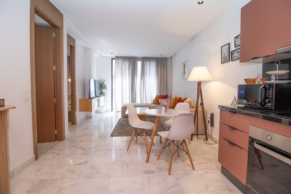 Bright,beautifully decorated studio,perfect for couples,solo travelers or remote workers. 🛏 Cozy bedroom with a comfortable mattress 🛋 Living room with 65” smart TV, coffee table&artistic decor 🍳 Fully equipped kitchen (utensils, cookware,oven, etc.) 🚿 Modern bathroom 🌊 Balcony with port&sea view 🌐 High-speed Wi-Fi ❄️ Air conditioning 🅿️ Nearby parking 🧺 Washing machine 🔒 Self check-in ⚠️For Moroccan citizens,only married couples will be accepted.Thank you for understanding