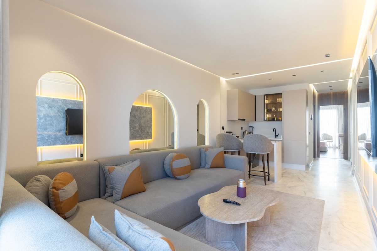 Escape to luxury in our stunning new one bedroom apartment, featuring spacious interiors with elegant decor. Entertain guests in a beautifully designed living room and cook up a feast in a fully equipped kitchen. Step outside and soak up the sun on your own spacious private balcony. Enjoy the convenience of a keyless smart lock, providing easy check-in and added security. Book now and experience a truly unforgettable stay in this picturesque setting