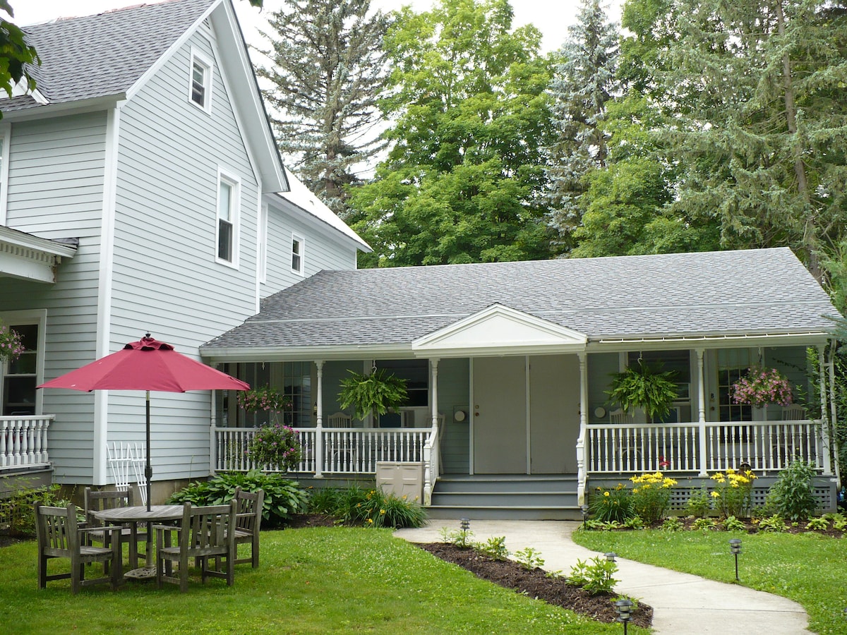 The Jefferson Inn is an 1800's Victorian Bed & Breakfast. The Inn is steps away from downtown and 1 mile to the ski slopes or hiking trails. Walk up the garden pathway to your own porch and enter into your unit. Each suite is decorated in a country cottage décor. These luxury suites have a queen size bed and a loveseat (single sofa bed).The unit has a TV, gas fireplace, and a mini kitchen. Breakfast is not included. Pets are allowed in these units for a fee of $15 per pet per night.