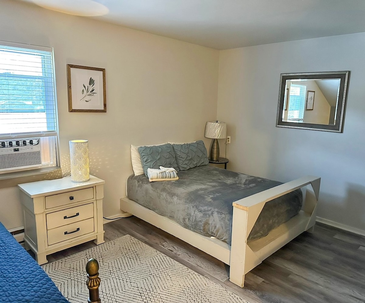 Whether you’re here for a ski weekend, or a reasonably priced stay during any season, our rooms are always clean and ready for your arrival. This two bedroom suite is located on the first level, includes a mini-fridge beneath your 43 inch Smart TV with Netflix configured, and free high-speed WIFI. Fresh linens will be found on our comfortable beds. Your private full-sized bathroom is stocked with organic bathroom amenities and additional towels.