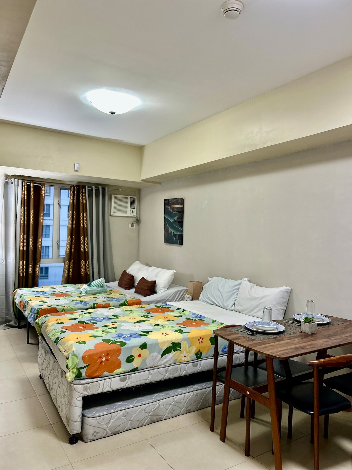Stay in this charmingly stylish studio condo that is fully furnished and tastefully decorated with fine art selections. This stylish place is close to must-see destinations of Cebu City and Mandaue City. It is located near church, hospital, banks and just 30mins away from Mactan Airport and just 10mins from Ayala Center and SM City Cebu shopping malls. It has internet, double bed, ref, smart TV, workdesk, induction cooker, rice cooker, plates, mugs and utensils. Comes with towels and sheets.
