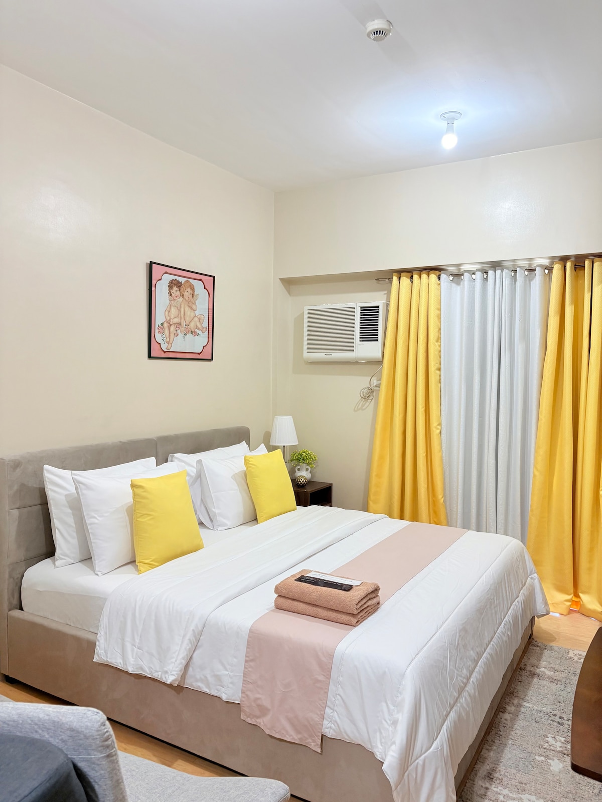 Relax in this entirely cozy, modern and vibrant 1BR condo unit that is conveniently located in ONE MANCHESTER PLACE, Mactan Newtown, Lapu-lapu City. Where it is close to 5 star resorts, restaurants, coffee shops, and supermarket. - 10-15 min drive away from Mactan Airport -Smart Lock Access - 50 Mbps WIFI - Free Netflix - Fully Equipped kitchen (IMPORTANT NOTICE: Kindly review the property descriptions below before making your reservation)