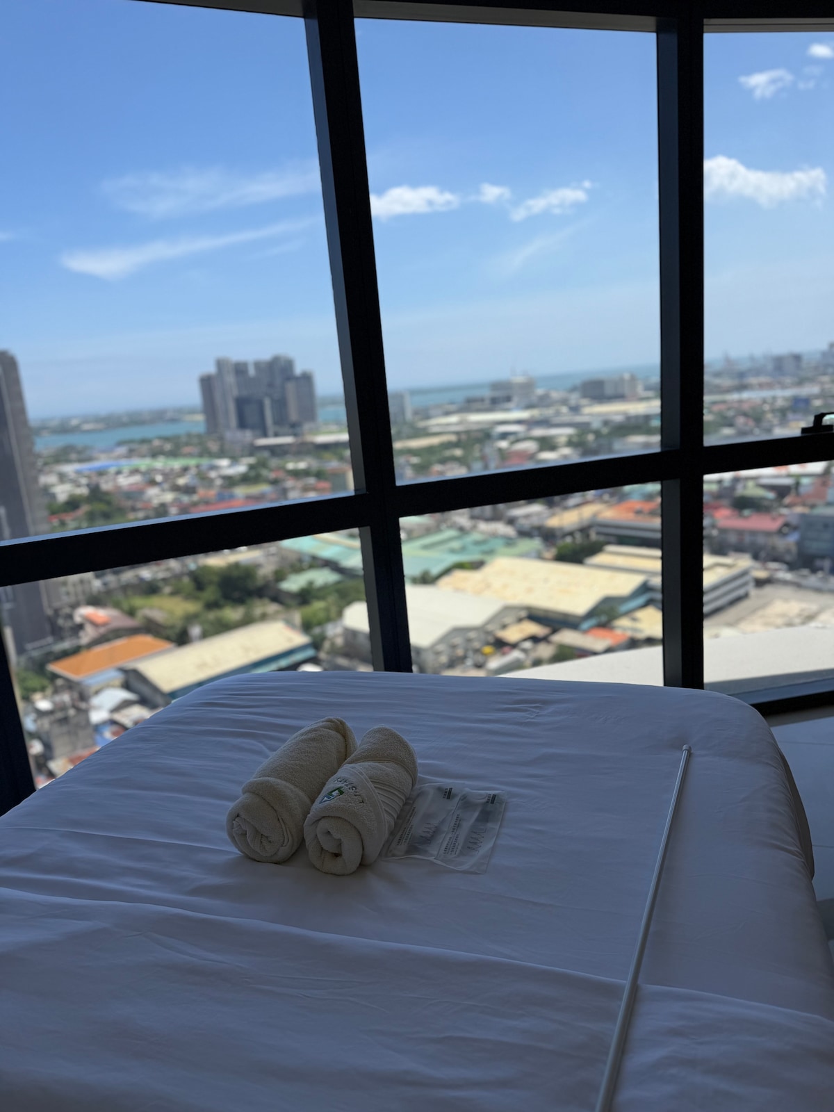Experience high-end living in this prime 22nd-floor luxury studio at Park Avenue 38, IT Park, offering elegant city and bay views. Good for four people. Enjoy your private cinema projector, plush sofa bed, indoor plants, and germ-killing AC. Features hot & cold shower, full cooking facilities, and daily housekeeping. 7-Eleven is at the entrance, surrounded by the best 24/7 coffee shops and upscale restaurants.