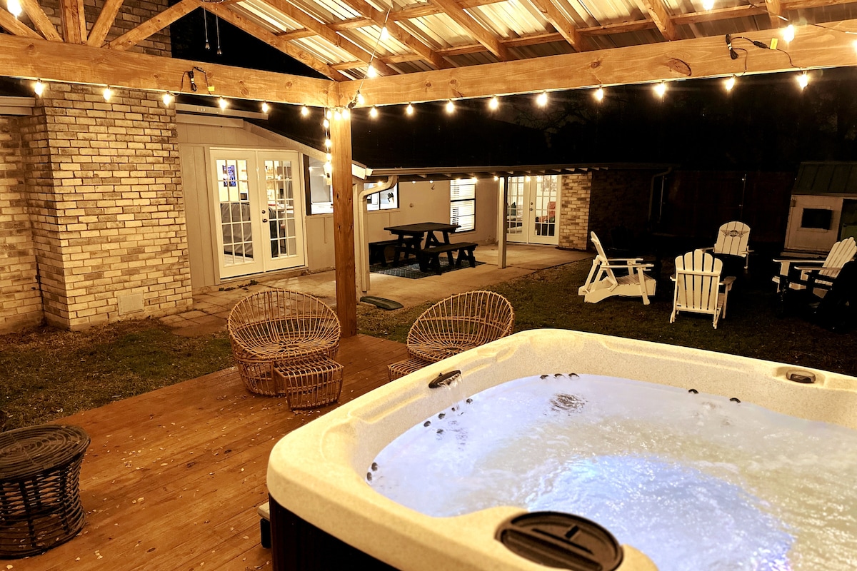 Relax, unwind with amazing views while on a romantic getaway, staycation or while working from this beautiful hidden gem! It is perfectly located close to downtown with easy access to restaurants, shopping and entertainment but far enough away to be secluded. At night, enjoy sounds of owls, frogs, cicadas and sights of fire flies. During the day, admire birds and other wildlife/nature while sipping wine or coffee on one of the 3 porches overlooking the garden and seasonal creek.