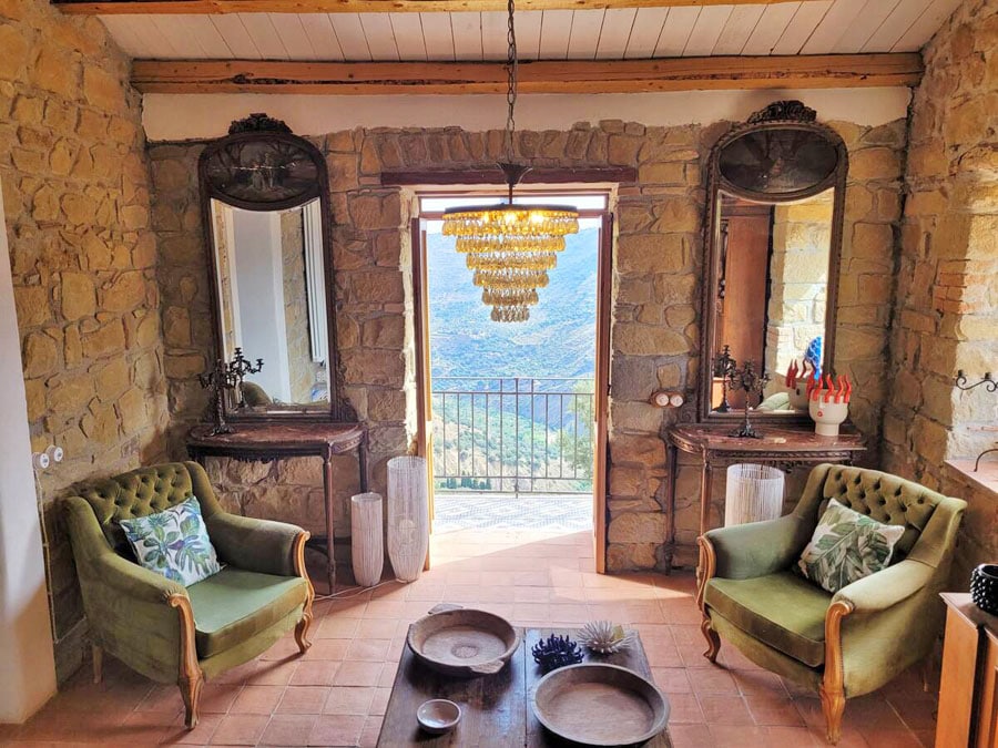 A splendid rural stone house from the late 1800s, 35 km from Cefalù, renovated in an eclectic way by the owners with a passion for objects and the art of furnishing places with taste and originality, making the place unique and full of details that bring back the charm of Sicily of the past. The house is located within an estate of centuries-old and monumental olive trees. Surrounded by lush Mediterranean vegetation just 8 km from the sea. The breathtaking view invades all the rooms.
