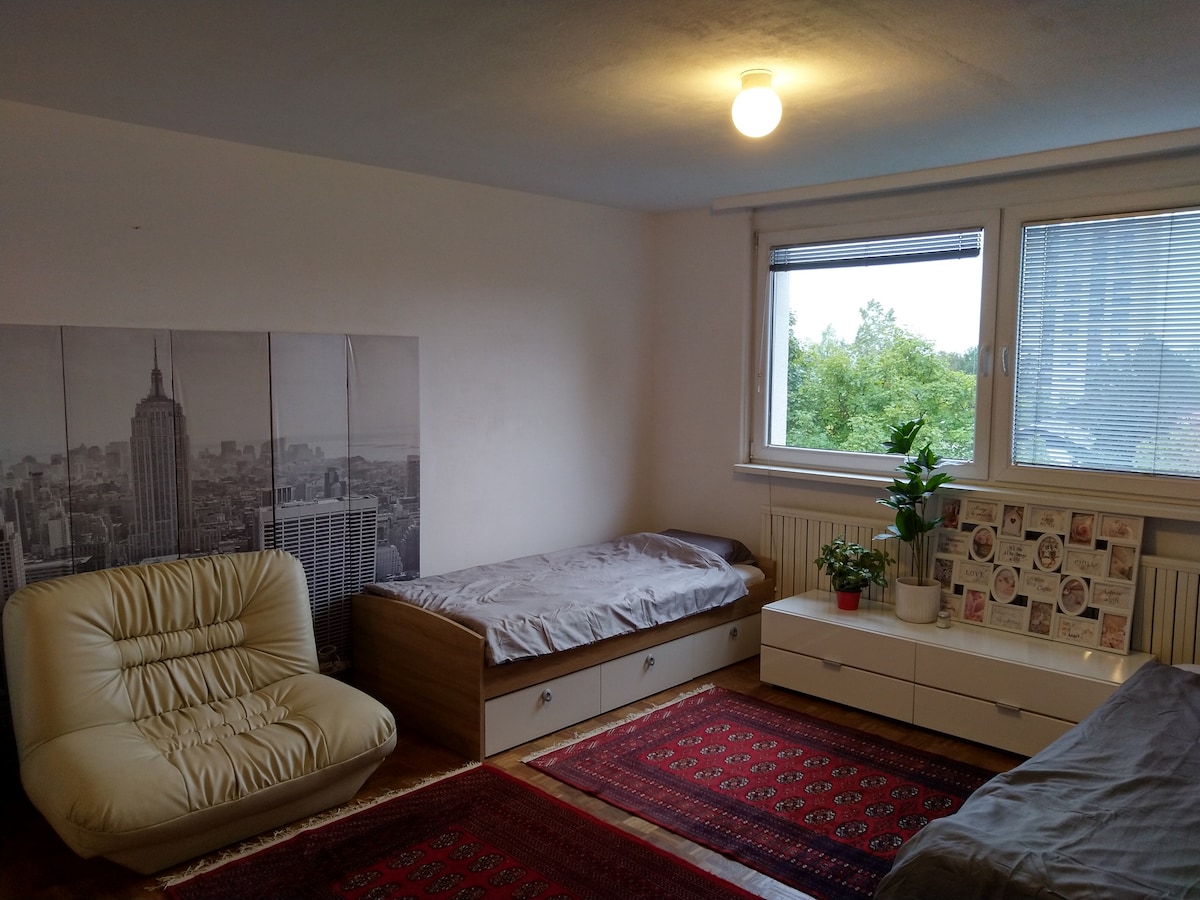 It's a family house. We are a family with 2 kids, living on the first floor, for guests there is fully equipped apartment on a ground floor. New bathroom& kitchen, living room/bedroom with two queen beds, free parking place, separate entrance, easy access, allow pets, fast internet. Terrace, gymnastic bar and trampoline for kids. Place is suitable also for guests on business trips. Garage for bikes and motorcycles, if needed. Location: ca 13 min from Highway exit and 6 min from the city center.