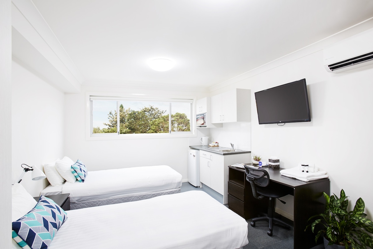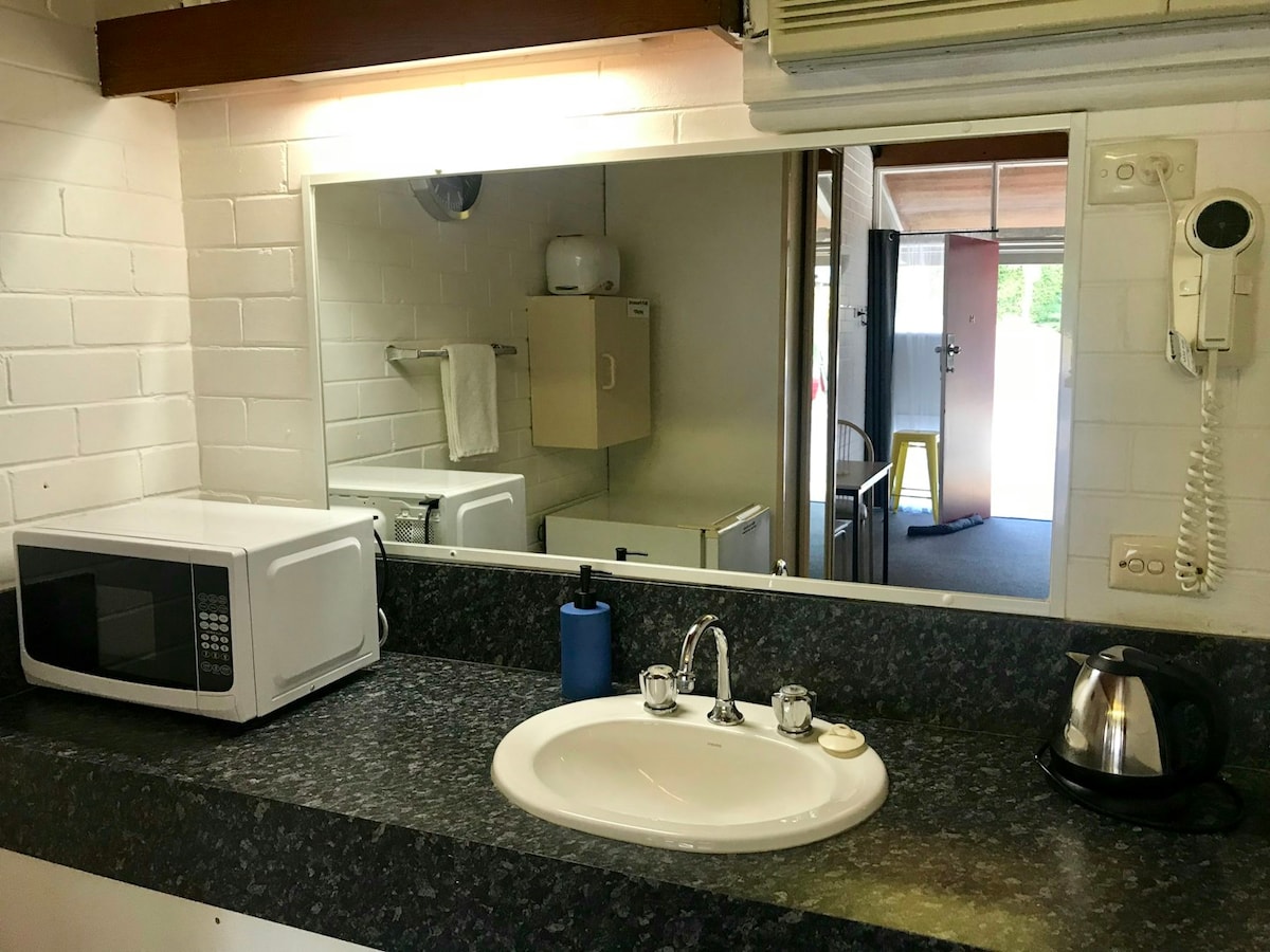 The Classic Queen Room offers a clean, comfortable, and modern space ideal for solo travellers or couples seeking a relaxing stay. Guests enjoy essential in‑room amenities, including air conditioning, a smart TV,high‑speed Wi‑Fi, microwave, bar fridge, and tea and coffee facilities. This room provides excellent value for travellers looking for a quiet, well‑maintained space with easy access to all facilities, including our fully equipped guest kitchen, pool, and parking.