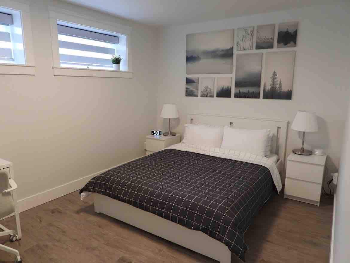 *Long term discount* *pls check the availability before booking* *sufficient FREE street parking* Oasis in the city center, enjoy both convenience and nature. We are ideally located in a safe and convenient neighborhood, 3 minutes driving to Metropolis that have sky train station, many shops,supermarkets,restaurants. This new Renovated suite in half basement , private and cozy. For booking Pls provide: Purpose of visiting , Arrival time, The numbers of guests. Thanks :)