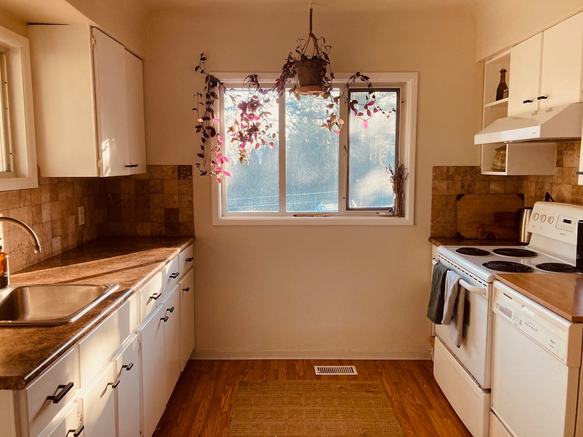 You will feel right at home in our bright, modern, stylish guest house . We offer contactless check-in to your very own private space on the edge of the city, nestled under soaring 200 year old oaks in a quiet, central neighborhood- less than 15 minute drive from the hustle and bustle of downtown Victoria and world famous Butchart Gardens! Our open concept cottage boasts vaulted ceilings, skylights, full kitchen, TV, in-suite laundry and free parking- everything needed for a relaxing retreat!