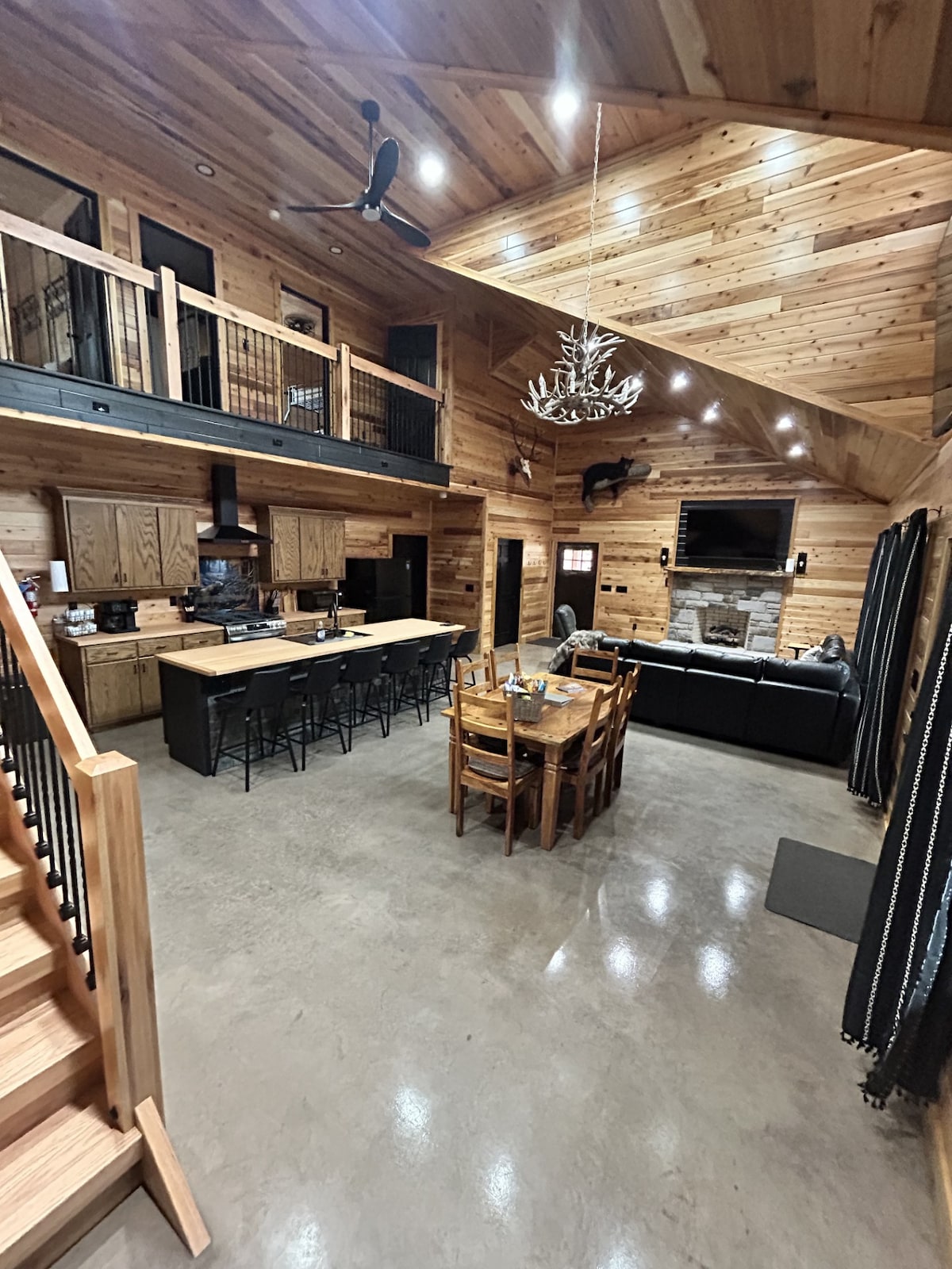 Your perfect retreat for game day, family gatherings, or a peaceful escape. This home features four bedrooms, a full bath, a half bath, and a fully stocked kitchen. The secluded backyard offers direct park access, a covered patio with seating for 8, and a 75” Roku TV. Inside, the main floor living room comfortably seats 8 and includes another 75” Roku TV, ideal for relaxing. Conveniently located near restaurants, shops, and grocery stores, with dog-friendly park trails right behind the property.