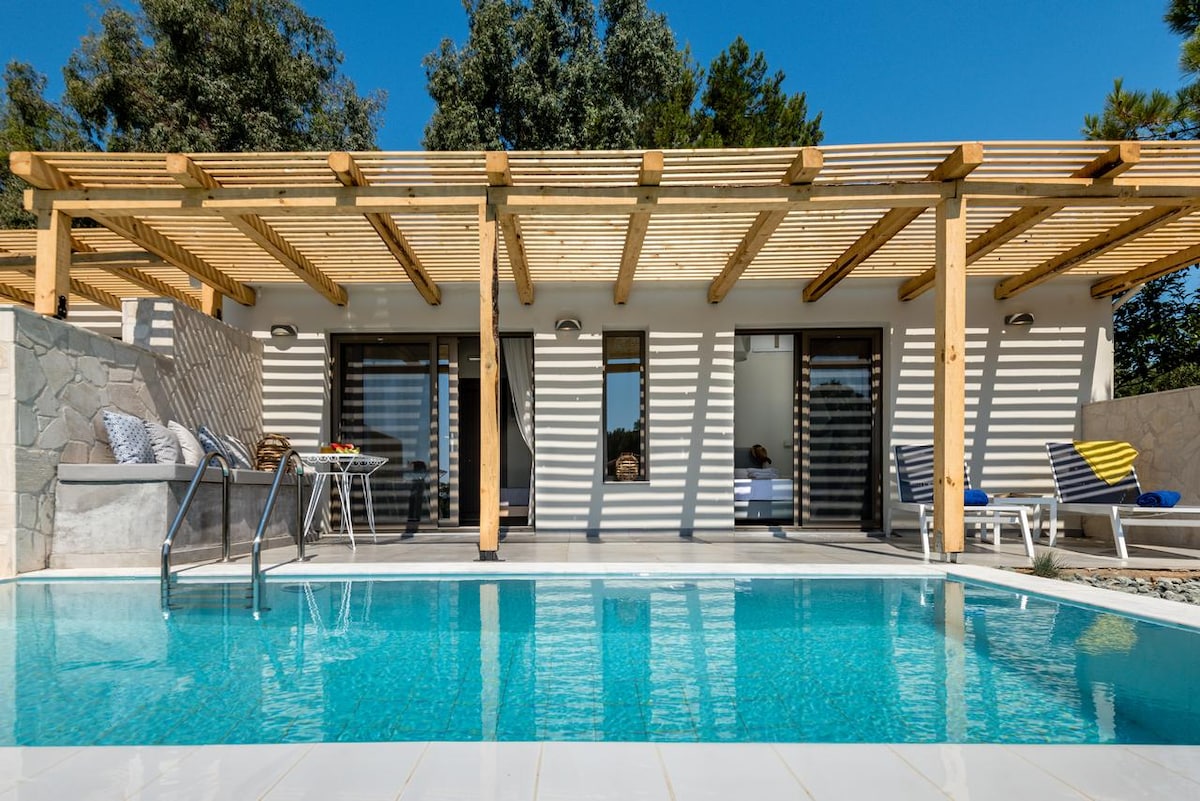Just 8 metres from the sea, Eucalyptus suite has amazing sea view and is part of a new development located in the picturesque village of Karavomylos. Eucalyptus suite has modern and stylish handmade furniture, air conditioning, fully equipped kitchen, and access to the outdoor pool , Wi-fi, fresh bed linen and towels.Perfect, for everyone who enjoys nature and seeks tranquility and relaxation,but in the same time in close proximity to everything else you might need.