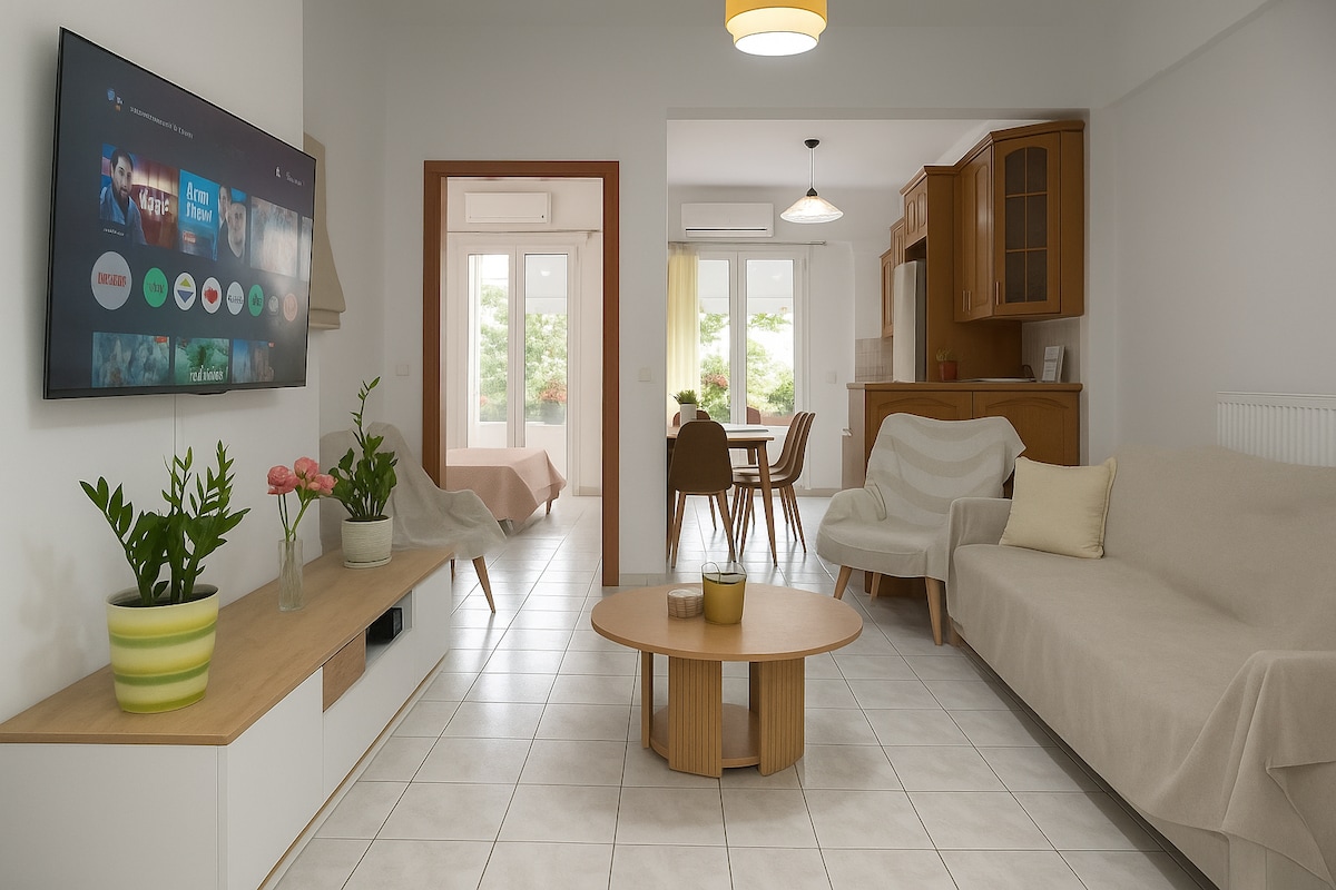 The Apartment is located in a quiet residential neighborhood in Argostoli, while it is only a few minutes from Rizospaston Avenue which leads to the main square, Vallianou Square, 5 minutes away from all the restaurants and bars of the city. Two minutes from the seaside area of the traditional port of Argostoli and many beautiful beaches within a 5 - 10 minute drive. Free public parking next to the property. It is fully equipped with all amenities.