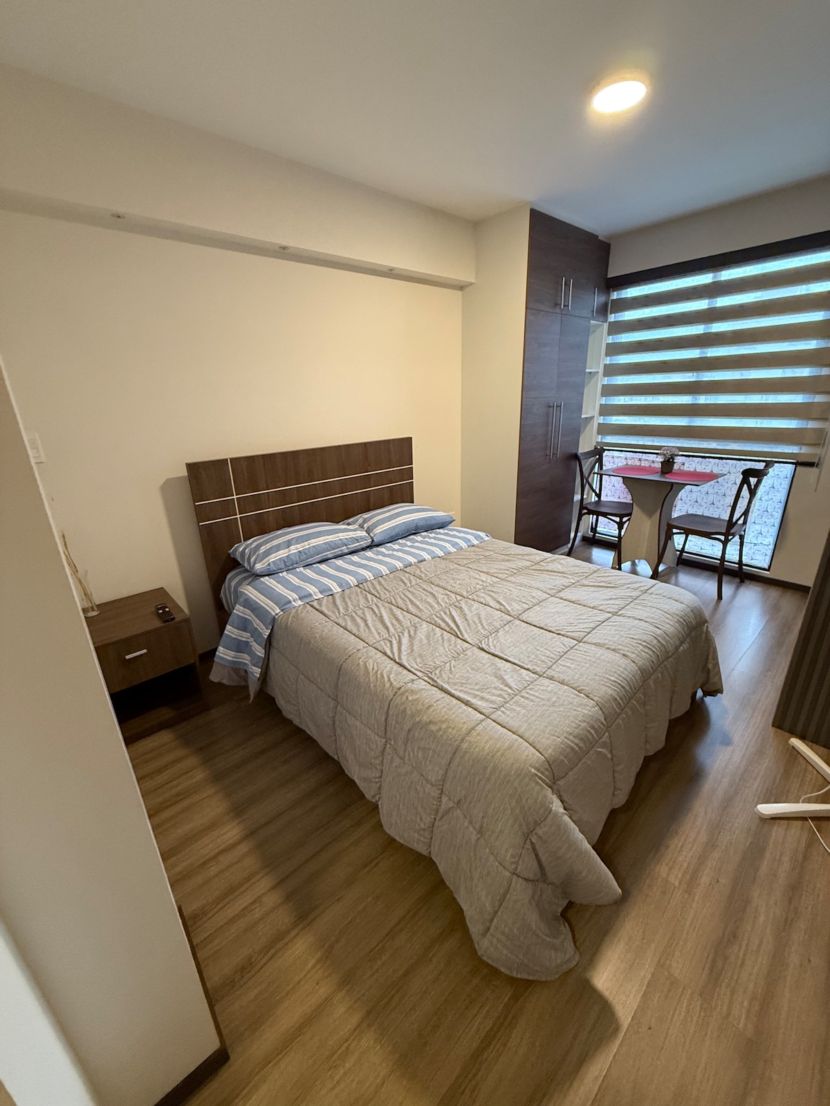 Descansa y disfruta en este moderno monoambiente, diseñado para brindarte confort y tranquilidad. Ubicado en una zona privilegiada, este espacio cuenta con todas las comodidades necesarias, incluyendo Smart TV, WiFi de alta velocidad, lavadora propia. Además, tendrás acceso a piscina (previa reserva), jacuzzi y sauna (pago por uso). Perfecto para viajes de negocios o escapadas a la ciudad. Disponible de parqueos para alquilar en el edificio.