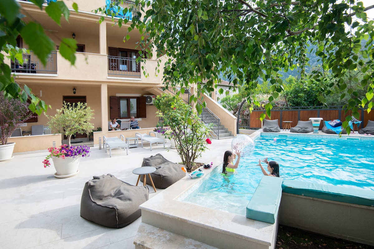 Green House property is your perfect getaway near historic Old Town Kotor. A 2-minute walk from the Old Town and 5 minutes to the beach. FREE parking included on our property. This cozy space blends rustic charm with modern comfort. Relax in the outdoor hot tub under a beautiful wooden pergola with a view of the old town walls. Refresh under the shower, enjoy our fresh fruit, and grill in your private garden. Great for nature lovers seeking calm, near main city attractions.