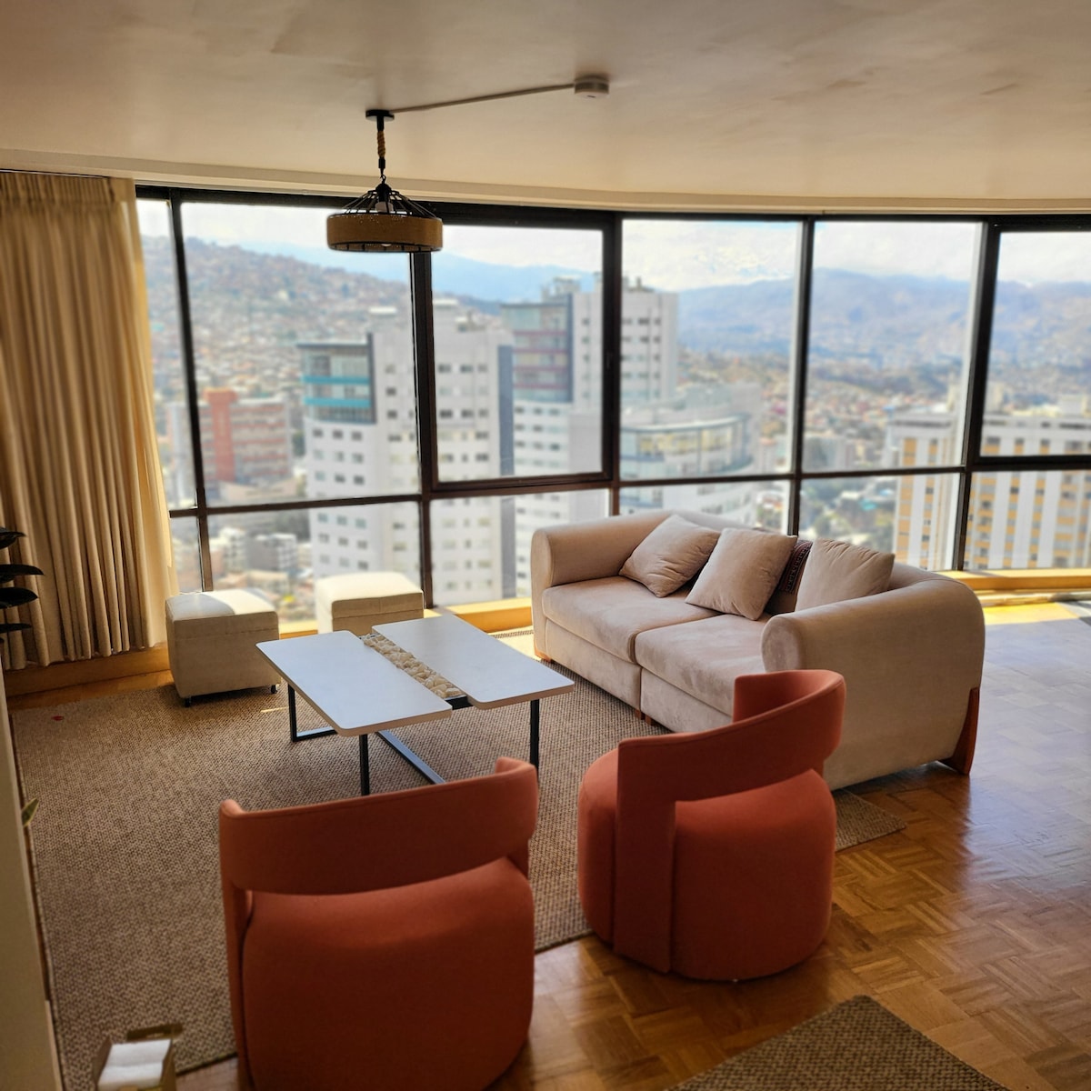 Enjoy a unique experience in our panoramic apartment 🏙️ in the heart of La Paz. Surrounded by restaurants, cafes, attractions, plazas, pubs, supermarkets, and much more. Located on the 18th floor, you won't miss any of La Paz's beauty. The apartment is equipped with everything you need to make you feel at home 🏠 . From the doorstep, you'll find transportation to all points of the city 🚌. The building has 24-hour security and surveillance for your safety.