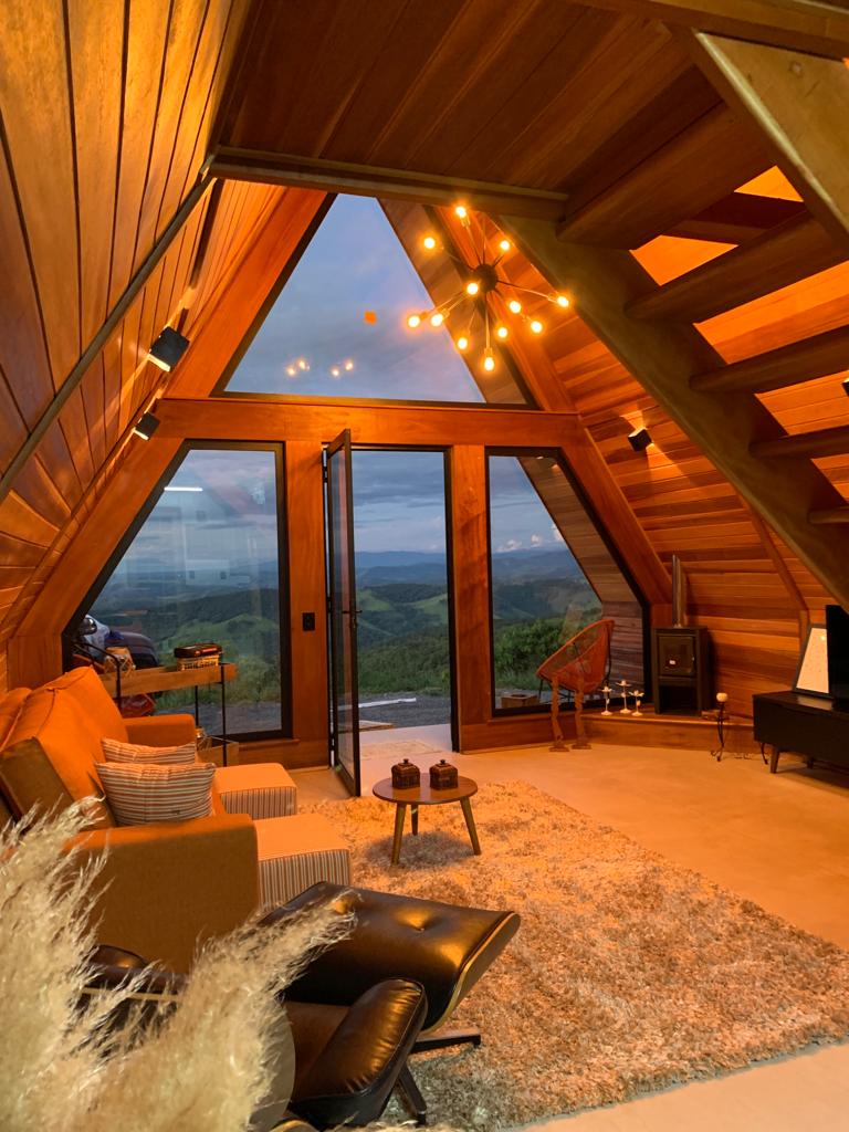 Você jamais esquecerá dessa experiência exclusiva e exótica neste destino rústico de madeira no alto das montanhas. Chalet encantador. Que tal relaxar no spa ofurô com hidromassagem apreciando champagne, ou nas redes ou bancos tomando vinho com maravilhosa vista do pôr do sol 220m² de área construída: 110m² área interna e 110m² de 2 decks Andar inferior: ampla sala, cozinha americana, 2 banheiros e amplo deck com ofurô Andar superior: 2 quartos grandes, deck superior, rede horizontal @montjacui