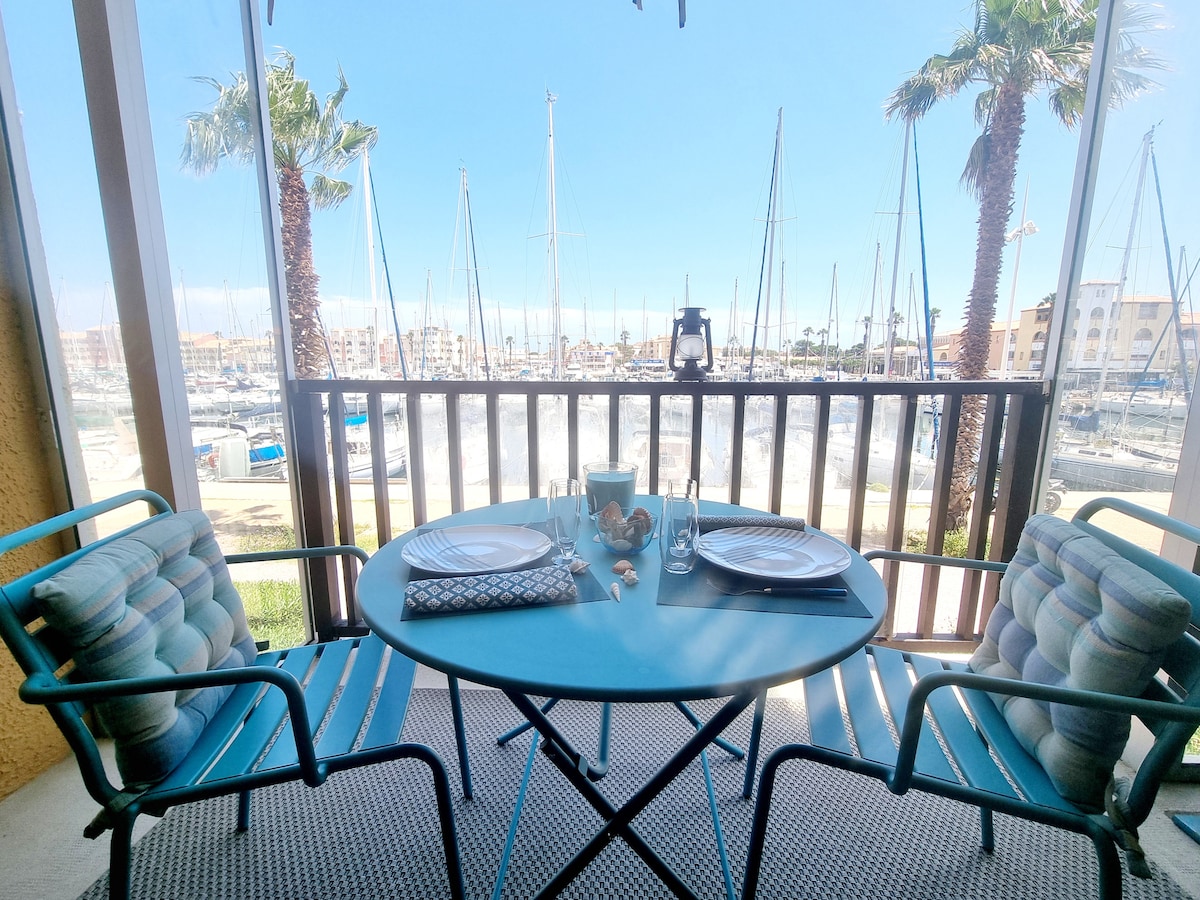 GRUISSAN ,迷人的单间公寓,安静,可欣赏港口景观