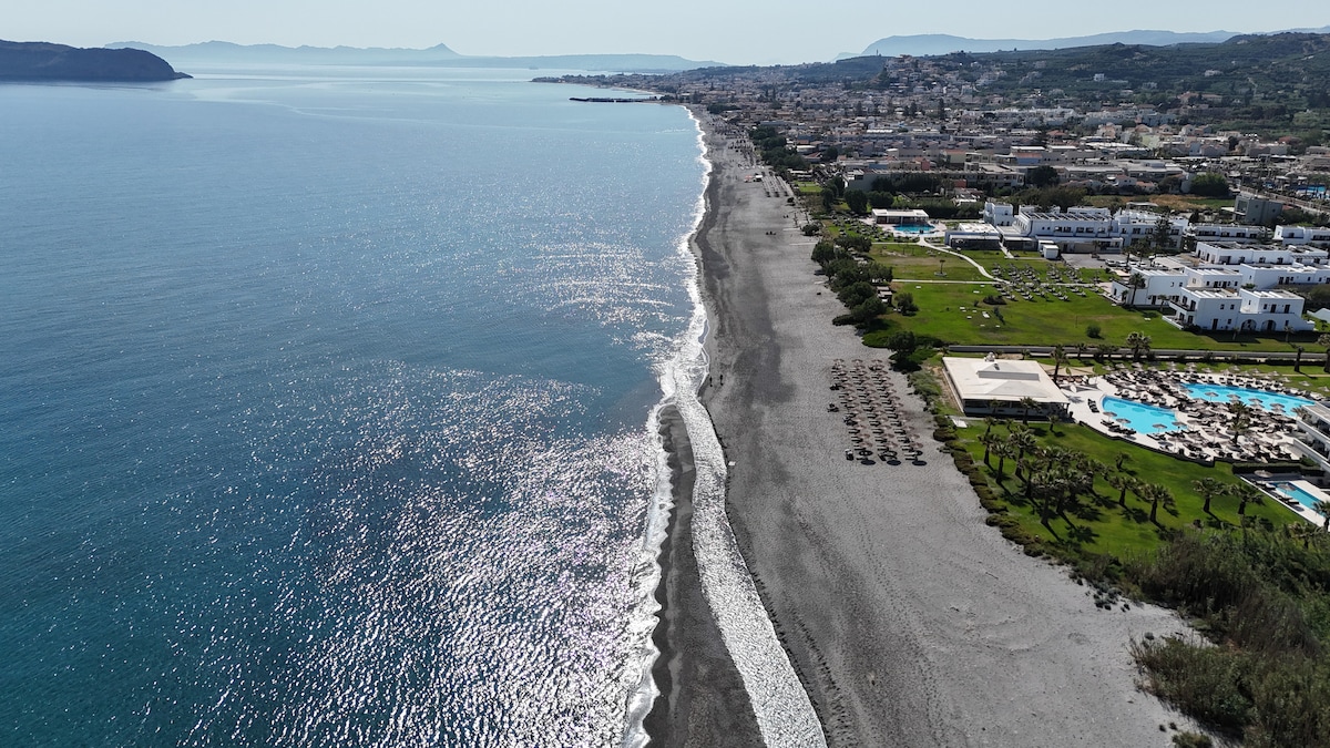 An incredible master-suite on the ground floor of a seafront villa recently restored and renovated with all modern amenities . A perfect getaway for your family vacation. Located a 10' drive from Chania city center, 25' from Chania International Airport, a kilometer away from a highway access and less then 10m from the sea, this property is the best of all worlds and at a perfect location.