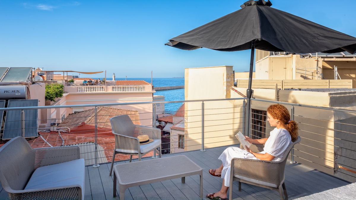 Casa Barchetta is a charming multi-level home in the heart of Chania’s Old Town, tucked in a quiet alley near trendy Splantzia Square. It features a private rooftop veranda with sea, harbour, and mountain views, plus a fully equipped outdoor kitchen. Designed for adults only (16+), it’s a peaceful retreat with character, comfort, and one of the best views in town.