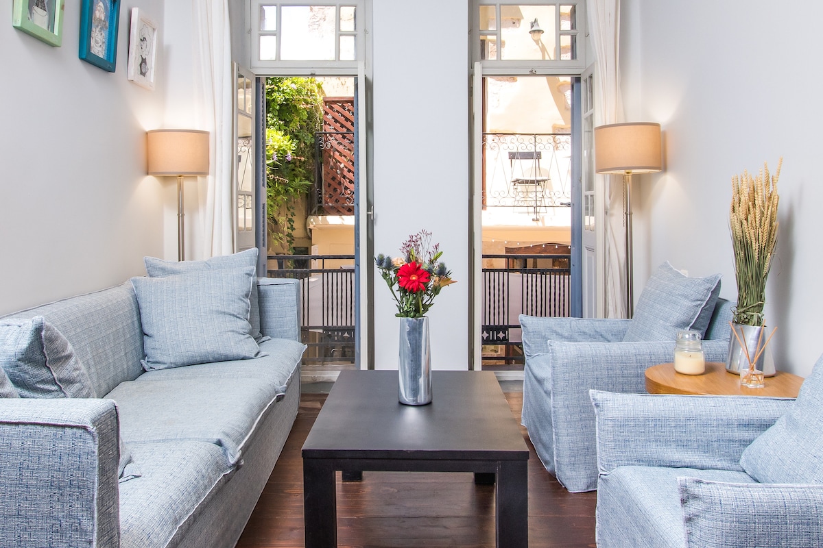 Our two-level maisonette provides luxurious and comfortable accommodation for families, couples travelling together and businessmen. Guests are within a 15-minute walk away from Chania City Centre and the Venetian Harbour, where the visitor can find a wide variety of restaurants, chic bars, boutiques and revel in a town which wears the mantle of Cretan tradition and yet, offers an array of modern conveniences which keep visitors returning year after year.