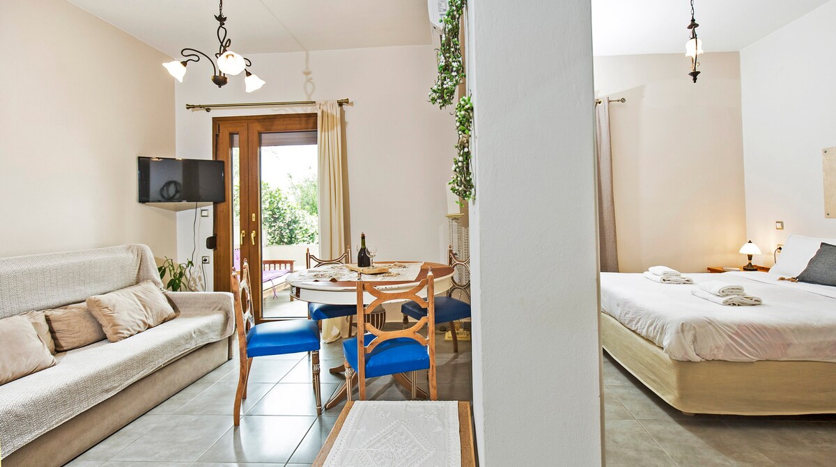 The Apartments are located in Livadia and are only 200m from the sea, while Elafonisi is only 13km away. At 450-650m there is a canteen and a local tavern. For the sea lovers, at 500m there is a pristine pebble beach, while at 5km Stomio Bay will make your afternoons most memorable. Only 7.4 km away you may find restaurants and a mini market. Continuing on, one meets the world-famous white lake, and then reaches the magnificent Elafonisi, a place that many of the world’s travellers talk about.