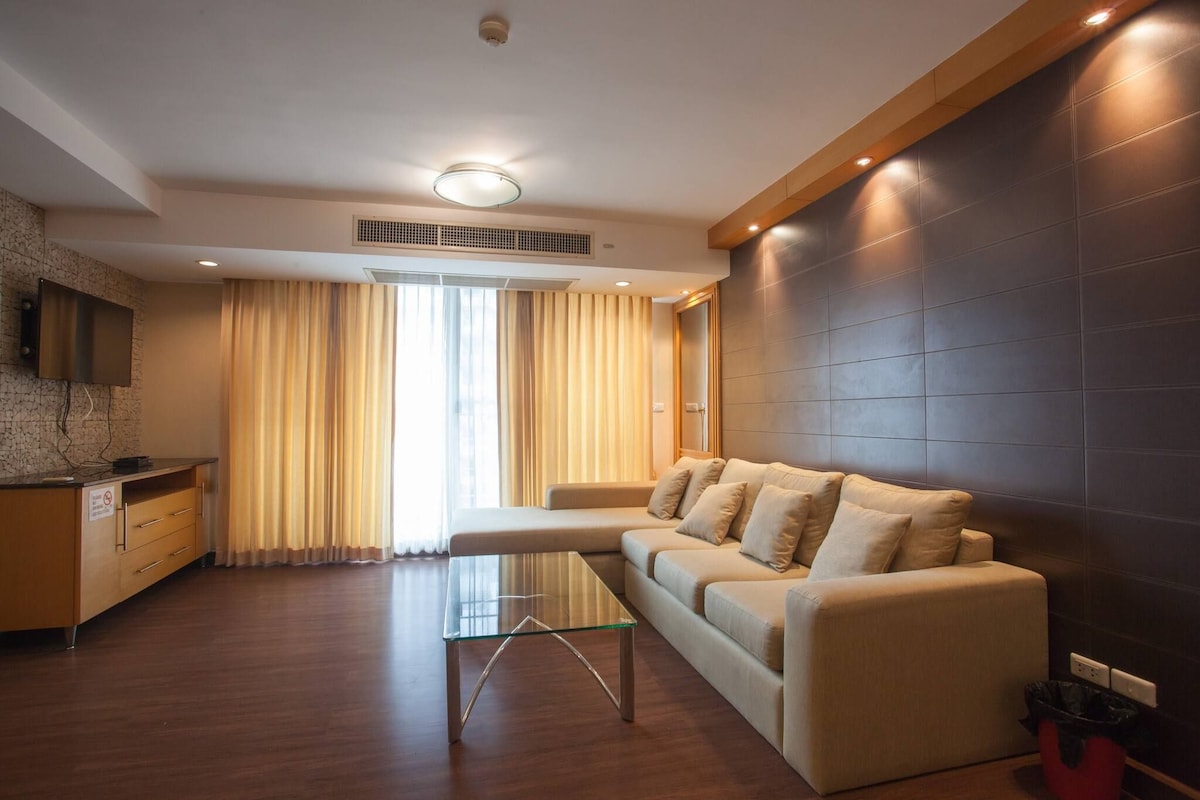 No impact from the earthquake. We have a large air purifier in all bedrooms. We own the entire building and allow short-term rentals, so you can book confidently and safely. Located in Sukhumvit Soi 15, the 120sqm Harmony Living Condominium features 2 bedrooms, 2.5 baths, new air conditioning, comfortable mattresses, strong Wi-Fi, a gym, and a rooftop pool with a sauna. The fully equipped kitchen with stove, hood, fridge, and washer/dryer ensures convenience.