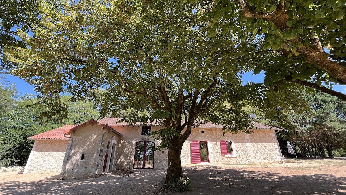 Maison du 18ème siècle en pleine campagne, ayant pour seul voisin, des chevaux et des vaches. Elle peut accueillir jusqu’à six personnes. Nous avons essayé d’y mettre tout le confort possible afin de faciliter votre séjour. Nombreuses randonnées aux alentours ainsi que de nombreux producteurs. Elle se situe à environ 45 km de Angoulême et de cognac , 60 km de Périgueux, 1h15 de Bordeaux et de Royan. Il y a une grande piscine et une salle de sport avec un sauna.