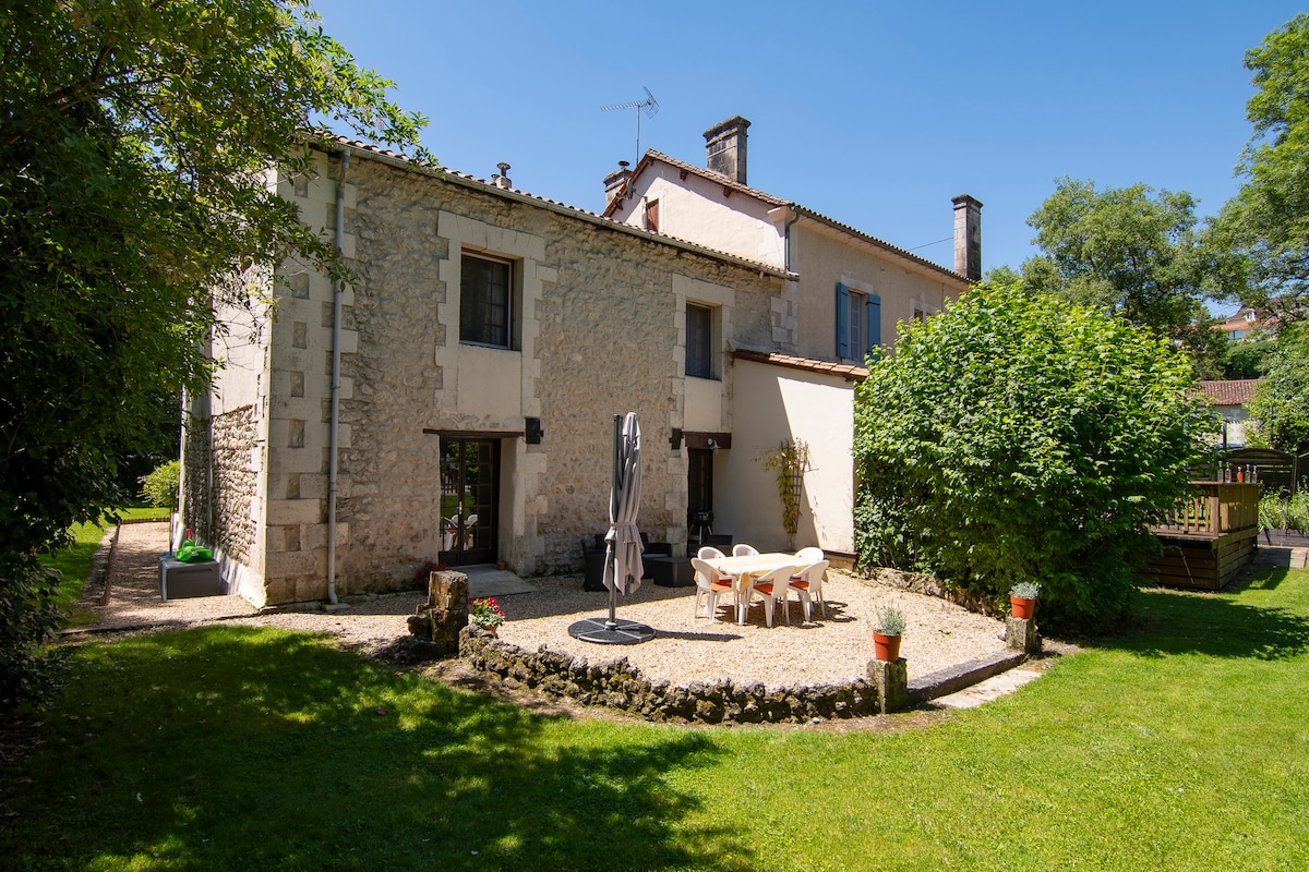 And...relax! L’Ancienne Gendarmerie is a beautiful restored police station right in the heart of the vibrant village of Pressac. On the main square opposite the church, and with lovely countryside views across the pretty river Clain and its medieval bridge, the house combines a sense of history with modern convenience and plenty of space. Perfect for families or groups of friends, there's plenty to do just staying in, but it is also a great base for exploring the beautiful Vienne and Charente.