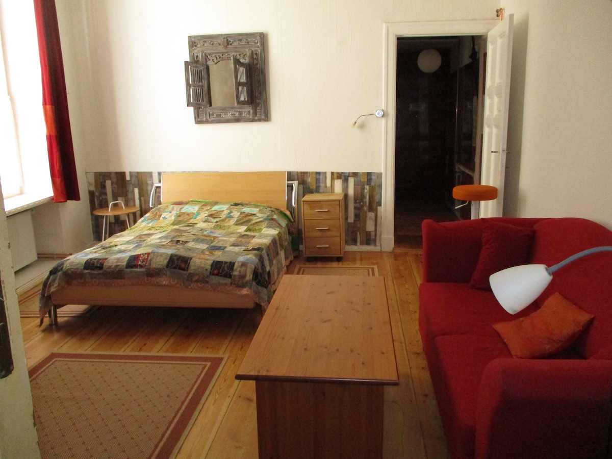We offer a very nice, newly renovated flat close to the garden of the Charlottenburg castle. You stay in a separate 50qm-part of our large apartment with your own entrance, living-kitchen, bath, living-floor and 1 sleep-living room in an old 1906 building. Children are welcome . Charlottenburg-castle is very close with it's wonderfull garden. A perfect place for couples (with one child).