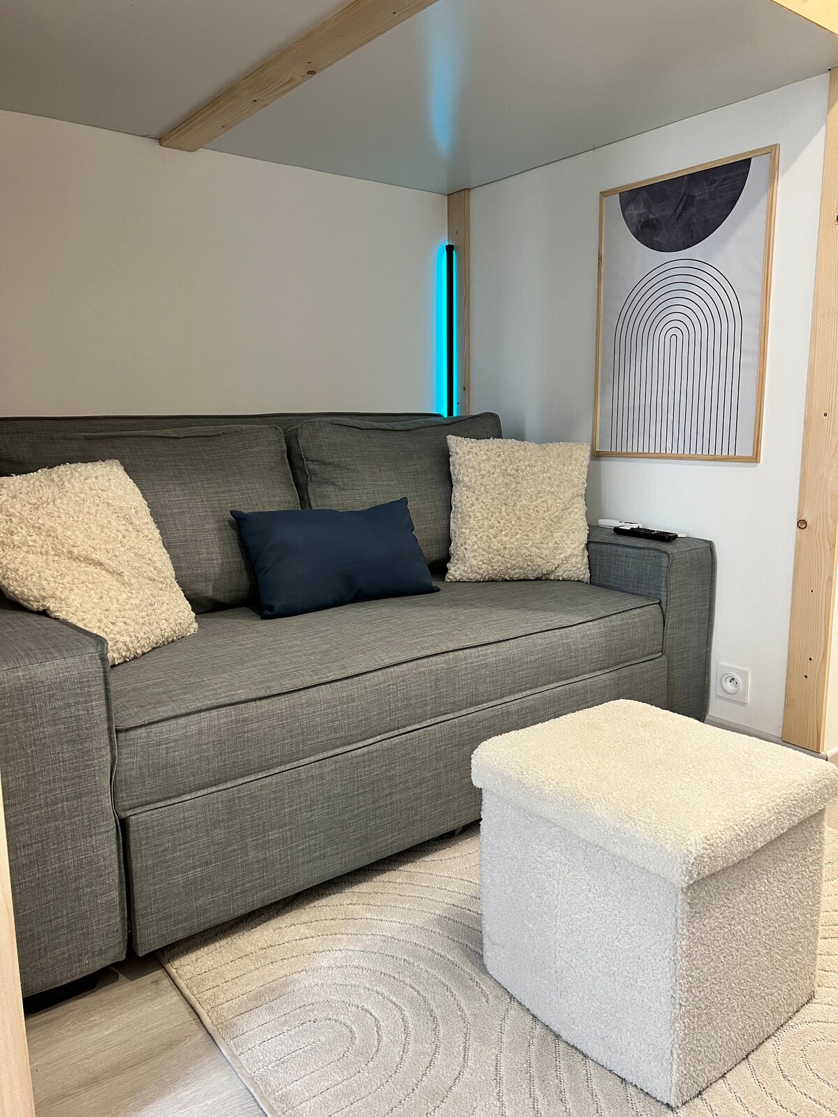 ☀️🏡 Profitez d’un studio lumineux, cosy et moderne avec jardin et terrasse. Il est composé d’une grande pièce divisée en deux espaces ; un côté salon avec un canapé lit (140*190) qui dispose d’un vrai matelas si besoin et un côté chambre avec un lit 140*190 cm. Le logement est spacieux, près de 30m2. 🍳 🚿 Vous trouverez également une cuisine équipée ainsi qu’une salle de bain et 1 WC 👤 Séjournez jusqu’à 4 personnes confortablement 🔑 Arrivées et départs autonomes 💰 Faible frais de ménage 10€