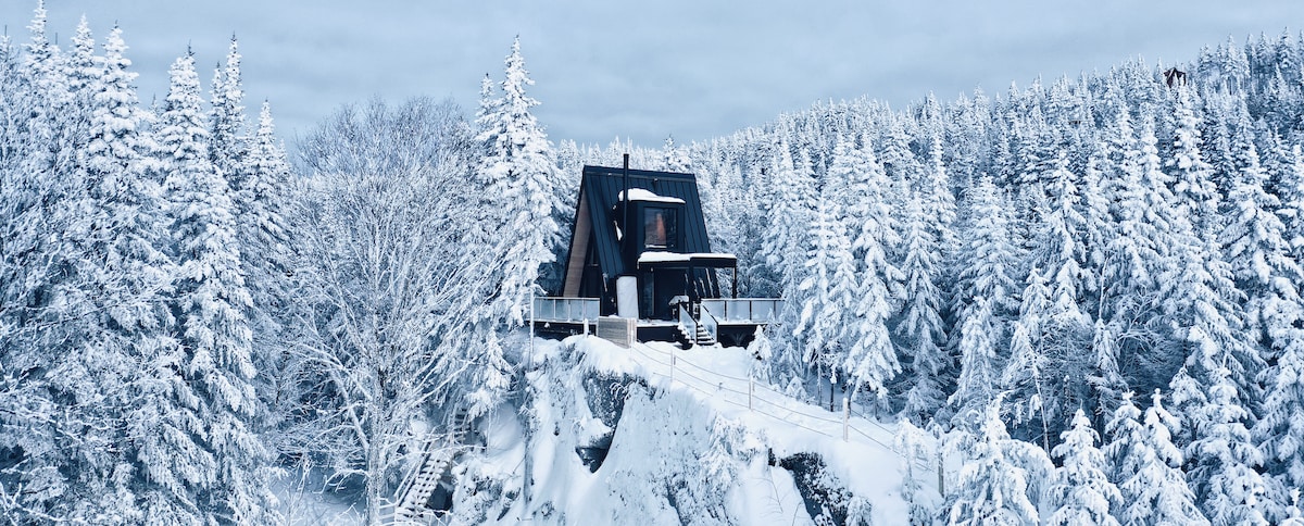 Évadez-vous dans cette micro-maison perchée au sommet d'une montagne et admirez la vue panoramique sur les sommets environnants à travers ses murs de verre. Détendez-vous dans le spa, accessible en toute saison, tout en profitant des plus beaux couchers de soleil. Découvrez ce trésor caché au cœur de la forêt boréale canadienne, alliant confort et fonctionnalité en toute saison. Une expérience intime et inoubliable, près de la ville mythique de Québec, classée au patrimoine mondial de l’UNESCO.