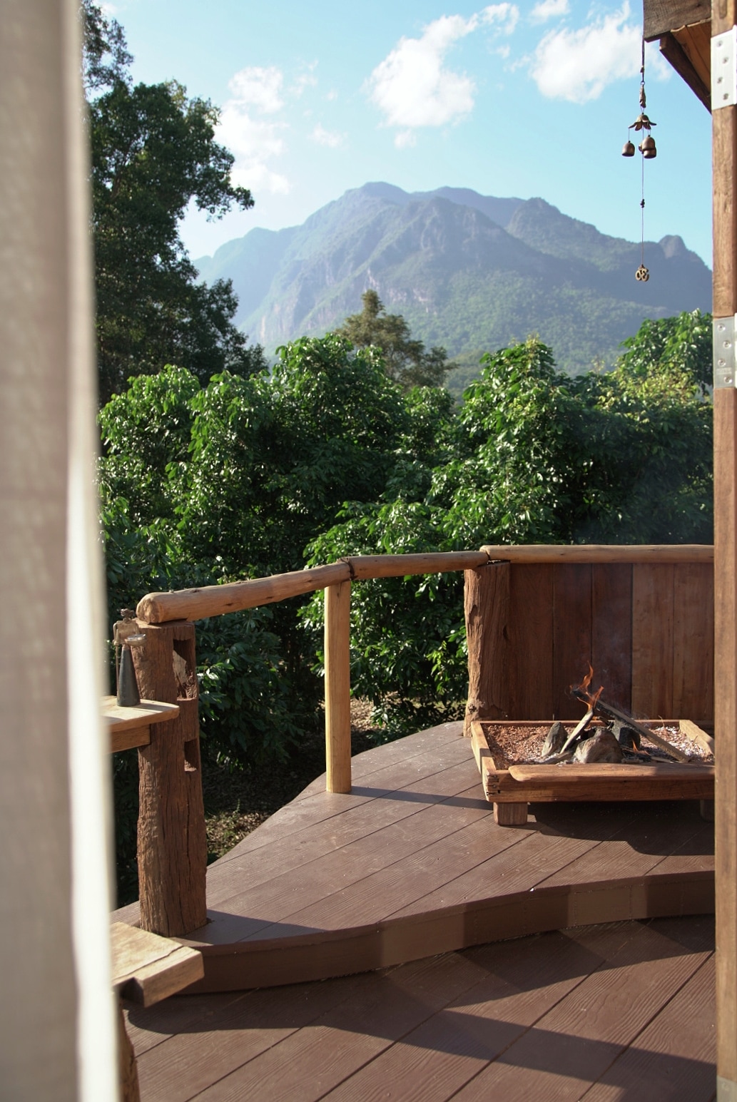 This bamboo hut is the first guest house at my farm, designed by myself. With a customized round window framing the whole rice field and mountain view. It has a private wooden bathtub, so you can have a warm bath in the chilly morning or evening here and enjoy the sunrise or sunset at the same time. There is basin next to the bathtub for you to brush your teeth and fresh up. On the other side of the house, it has a patio with hammock, for you to lay on and take a nap.