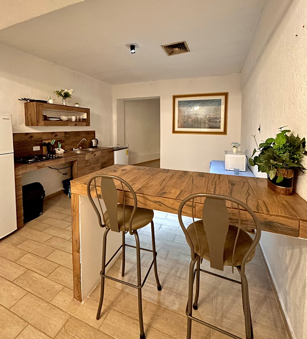 Cómodo y confortable, cuenta con una recámara amplia con cama matrimonial, baño con agua caliente, mini split frío/calor, frigo bar, cafetera eléctrica y horno microondas para que su estancia por turismo ó trabajo sea como si estuviera en casa. El internet inalámbrico y Smart TV también están disponibles para que tu estancia sea completa, si tienes tu cuenta de Netflix puedes configurarla para que disfrutes de tu aplicación, si necesitas asistencia puedes contactarme con toda confianza.