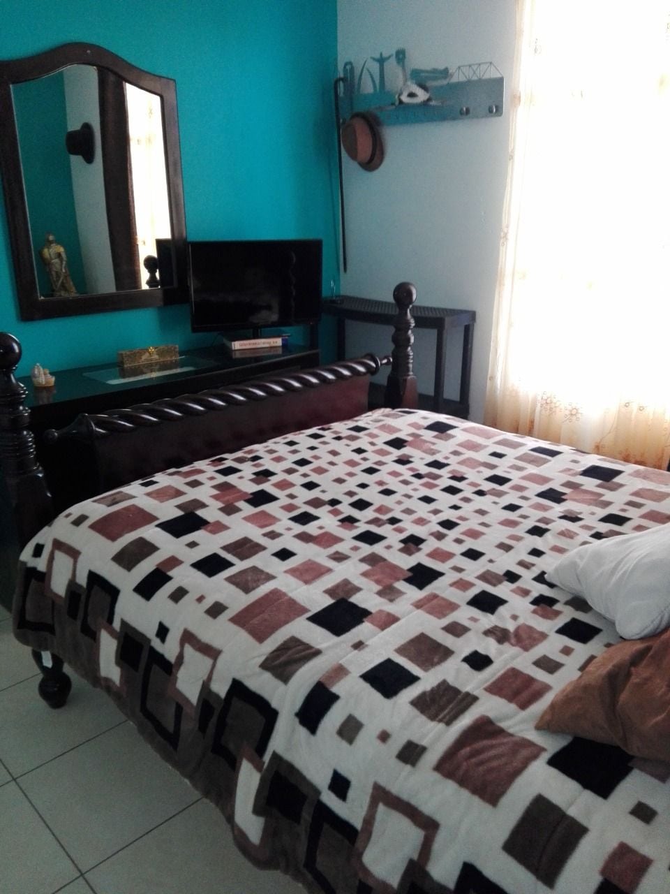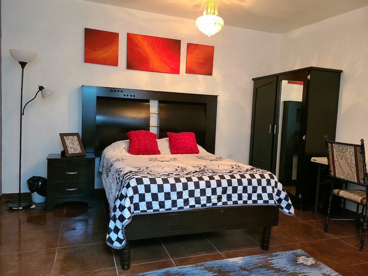 Alojamiento donde la tranquilidad se respira. Espacios cómodos para 6 personas. Muy cerca de los hospitales, muy cerca del centro de la ciudad, acceso rápido a cualquier punto. 5 habitaciones y 1 baño completo con 2 regaderas, 1 habitación con 2 cama matrimoniales y TV con canales locales, 1 habitación con cama Queen, acogedora sala de estar, comedor de caoba para 8 personas y TV Smart canales IZZI y ViX, Cocina completa, estufa refrigerador, microondas, licuadora, cafetera, etc.
