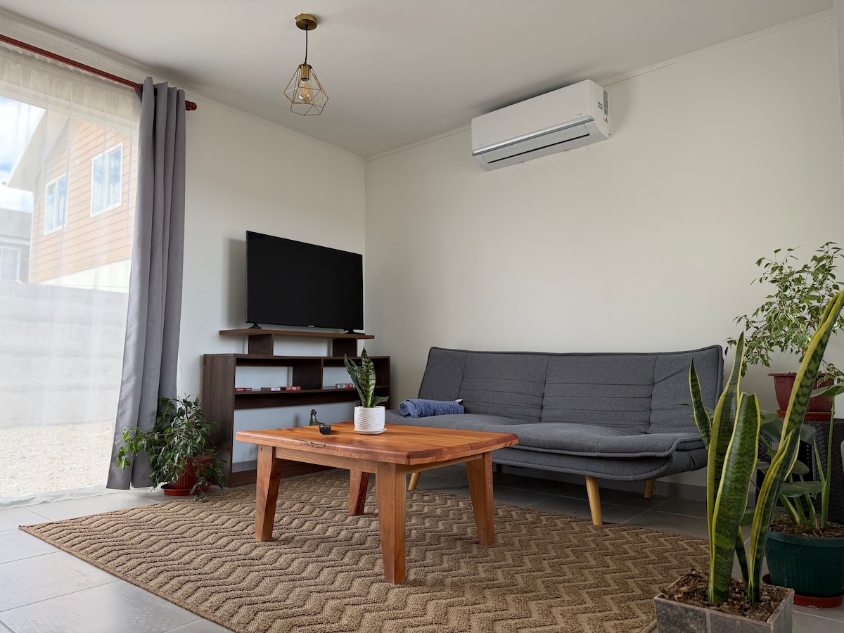 Nuestro espacio se ideó como una cabaña tipo Tiny house, amplia y cómoda, con la privacidad y tranquilidad que entrega el entorno natural de Castro rural. Esta equipada con wifi, smartv, frigobar, microondas cubiertos y artículos de cafetería. Nos ubicamos en Gamboa Alto, en el límite urbano de Castro, a 8 minutos del centro en vehículo. Contamos con áreas de bosque, mesón exterior y amplio estacionamiento. El espacio de un ambiente es adaptable para 2 adultos y un niño.