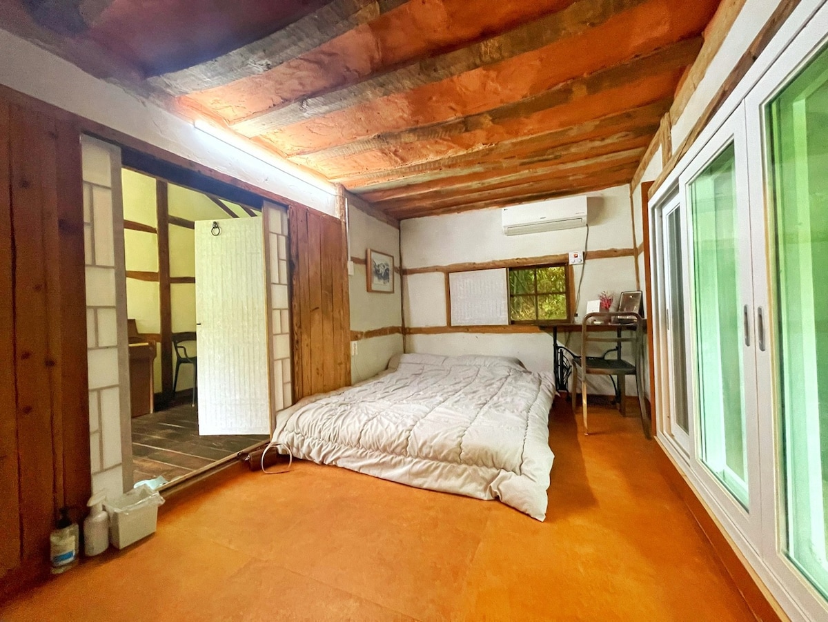 位于神井湖畔的独特小屋 这座别致的农舍位于牙山市神井湖旁,经过精心改造,融合了温馨与时尚。牙山市有丰富的旅游资源,如Pinnacle Land、公世里圣堂、外岩村、民俗博物馆、温泉和灵仁山滑索等。距离小屋仅100米的神井湖于2025年被指定为忠清南道首个地方庭园公园,是全年适合散步和慢跑的地方。湖周围还有许多餐厅和咖啡馆,让您尽享城乡结合的独特魅力。 这间小屋与房东居住的区域(A区)位于同一栋建筑内,通过一扇开合门分隔,确保互不干扰。客人专属的B区拥有独立的入口以及连接果园的露台。露台设有凉亭,您可以尽情享受宁静的乡村氛围。室内采用开放式设计,设有大窗户、6人餐桌、两张超单人床和宽敞的沙发,为您提供舒适的入住体验。