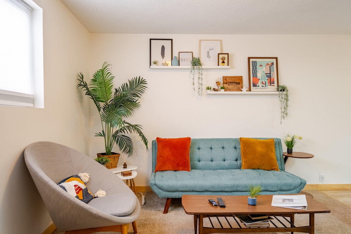 Welcome to your private townhome, offering three levels of comfort for your group. Located within the scooter zone and nearby other points of interest such as; Stanley Park, Mission, Barley Belt, the Stampede grounds and more. This home offers two primary bedrooms, each with its own ensuite, 59' smart TV and king-sized bed. The third sleeping space can be found in the living room (sofa bed). For larger groups we offer a single cot. The two patios are a great place to enjoy the sunrises.